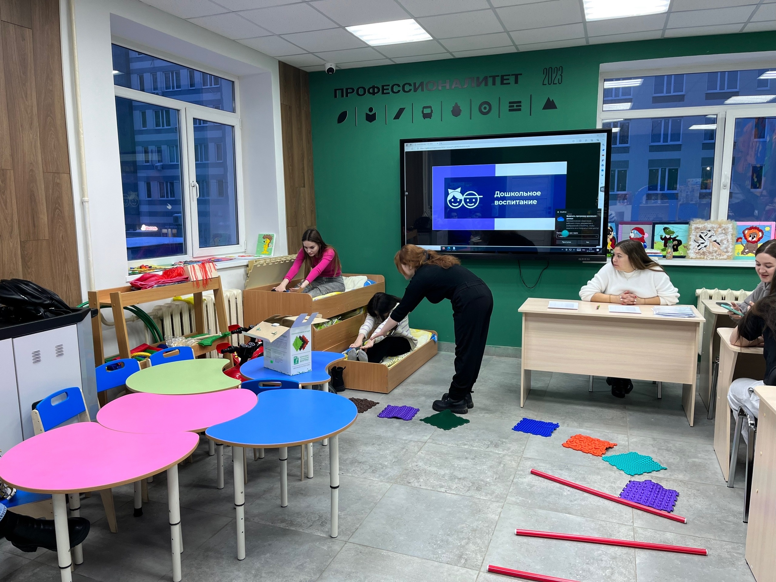 Студенты специальности "Дошкольное образование" прошли отбор по направлению «Дошкольное воспитание». Учебные группы 2 и 3 курса выполнили конкурсные задания и провели демонстрацию, студентам было необходимо разработать конспект бодрящей гимнастики после сна в подготовительный группе детского сада.