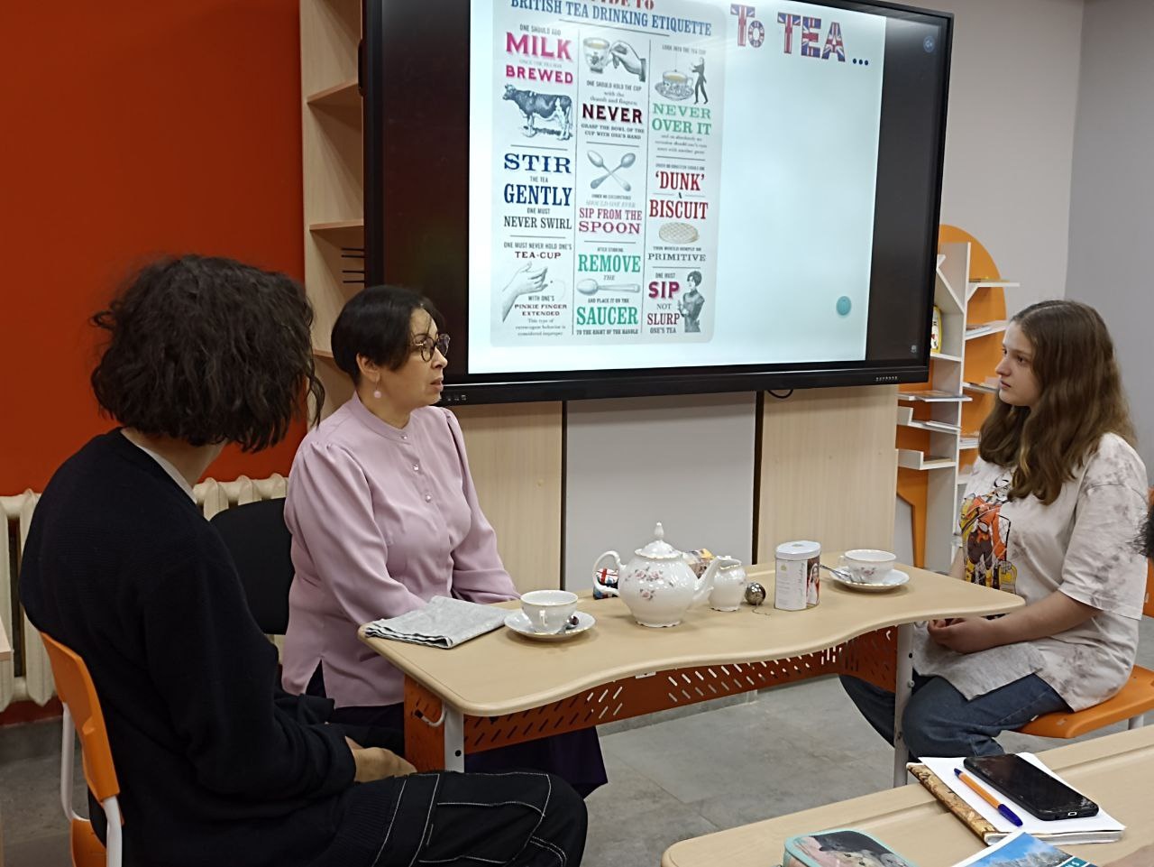 Интерактивная форма включала в себя знакомство с ритуалами и историей, особенностями и обычаями традиционного английского чаепития. В процессе взаимодействия с педагогом и однокурсниками, студенты практиковали навыки восприятия речи на слух, анализа и систематизации информации из различных видов источников: фотографий, постеров, комиксов и интеллект карт.