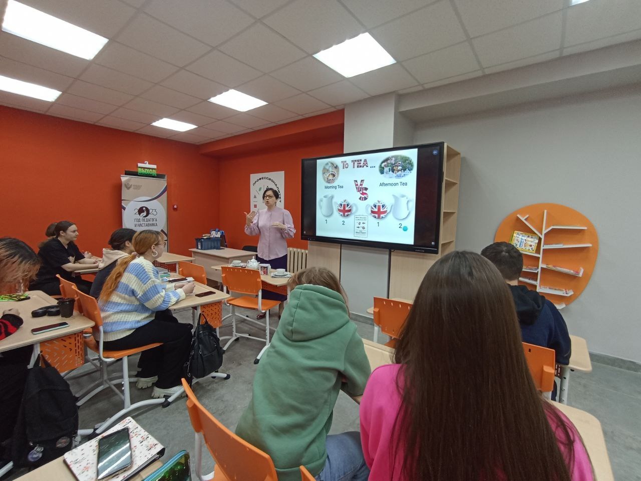 В очередной раз наши студенты с восторгом слушали Эмму Эдуардовну Сафиуллину, являющуюся лауреатом Всероссийского конкурса «Учитель года России – 2018». Эмма Эдуардовна провела мастер-класс, который назывался «To Tea or Not To Tea?».