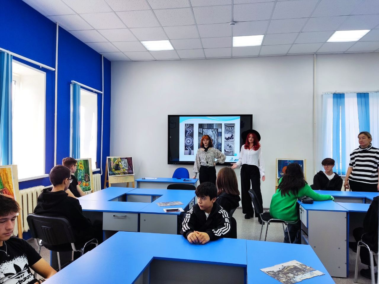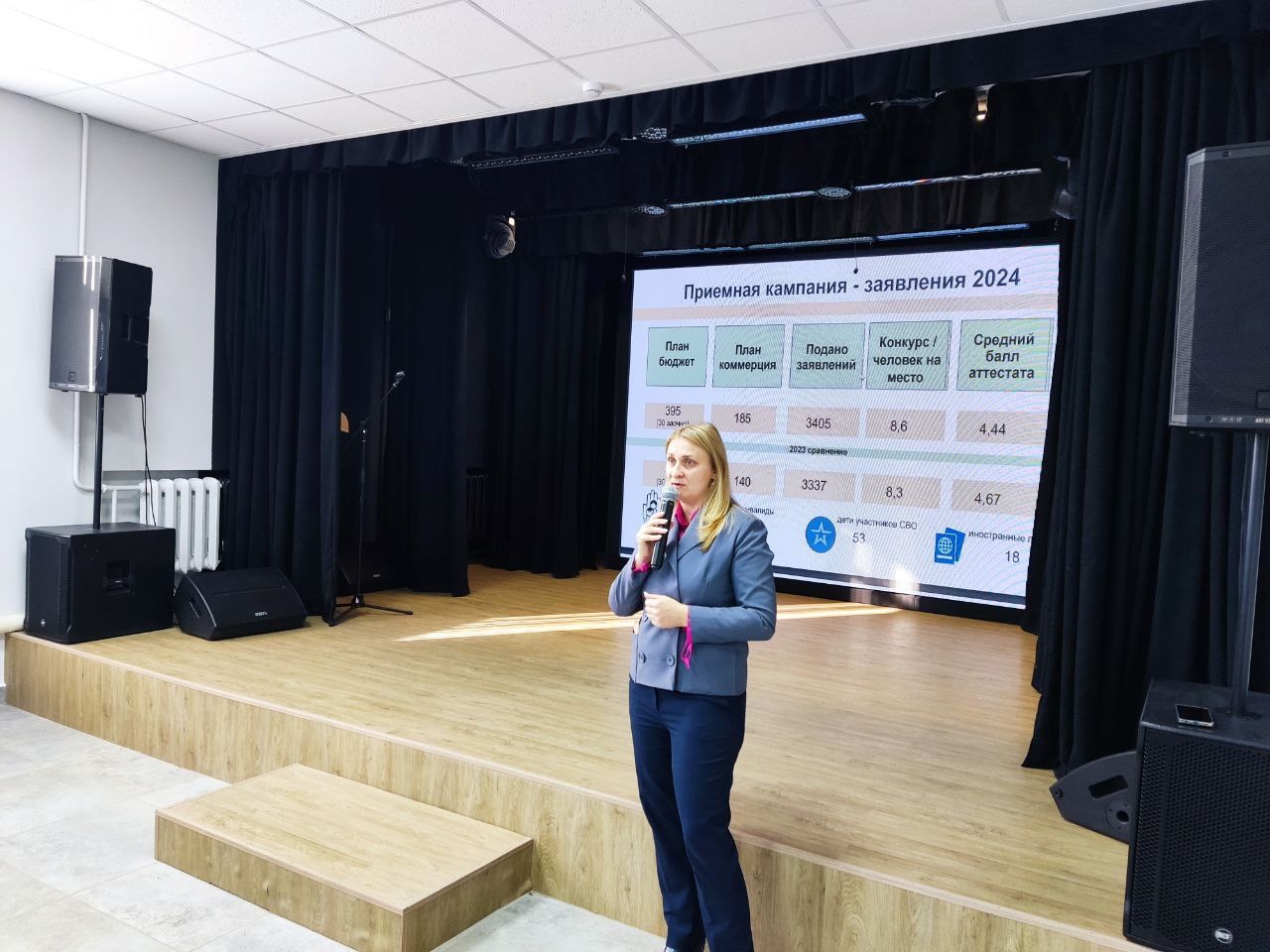 Началась встреча в театральной студии, где перед гостями выступили директор Колледжа Анна Таболина и руководитель Центра педагогических компетенций Нина Набиулина. Анна Николаевна рассказала о ключевых моментах поступления в колледж Акмуллинского университета, сроках приемной кампании и проведения вступительных испытаний. Нина Геннадьевна представила школьникам и педагогам специальности, по которым осуществляется подготовка.