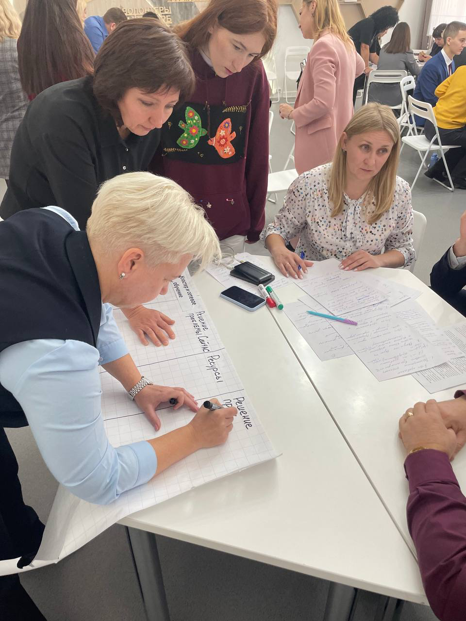 Участники сессии искали ответы на самые сложные вопросы, предлагали неожиданные решения. Например, студенты хотели бы получать сразу два образования, обучаясь в колледже, предложили различные формы взаимодействия с работодателями, даже появилась идея провести товарищеский спортивный матч.