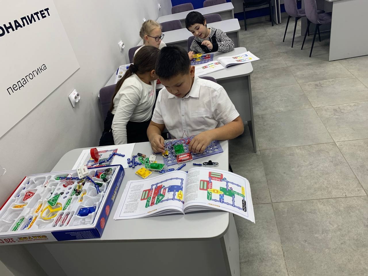 В это же время для учащихся 1-4 классов лицея были проведены мастер-классы в лабораториях центра, способствующие развитию инженерного мышления младших школьников: шахматы, робототехника, графический дизайн и анимация, программирование Scratch.