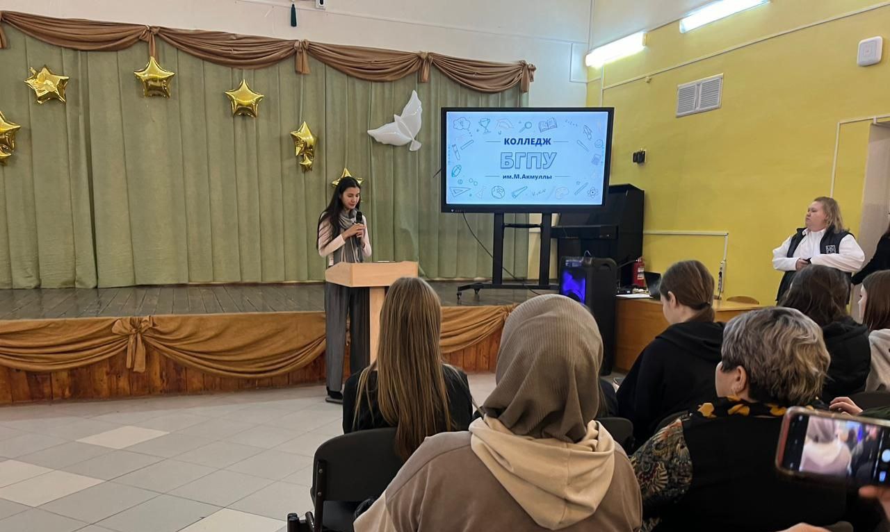 Летом 2025 года учащимся предстоит сделать выбор учебного заведения и будущей профессии. Перед собравшимися выступила заведующая практикой Колледжа БГПУ им.М.Акмуллы Эльмира Фархиева. Она рассказала о правилах приема в колледж, о специальностях и о площадке Федерального проекта "Профессионалитет".
