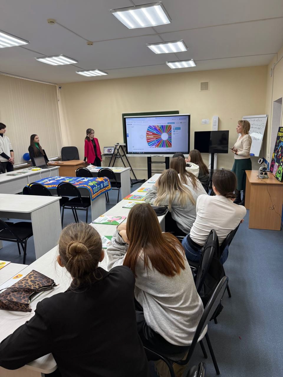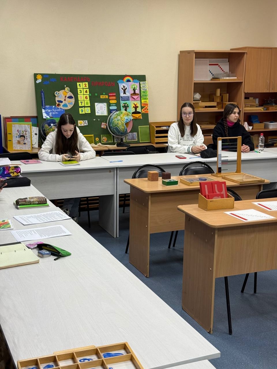 Кроме того, участникам визита показали комнату для самостоятельной работы (СРС), где представлены различные методические материалы и ресурсы для будущих педагогов. Студенты также активно участвовали в заданиях, разработанных специально для младших школьников. Эти задания позволили им не только применить полученные знания, но и развить навыки работы с детьми, научиться создавать интересные и познавательные уроки.