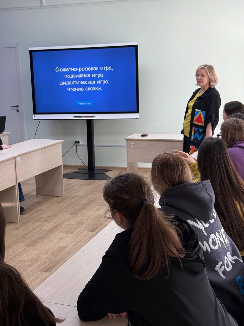 Коррекционное оборудование для занятий с детьми с нарушениями речи, зрения и слуха продемонстрировало важность адаптации образовательного процесса к нуждам каждого ребенка. Также студенты активно участвовали в викторине, которая позволила им проверить свои знания и погрузиться в различные аспекты педагогики. Конкуренция и командная работа способствовали сплочению группы.