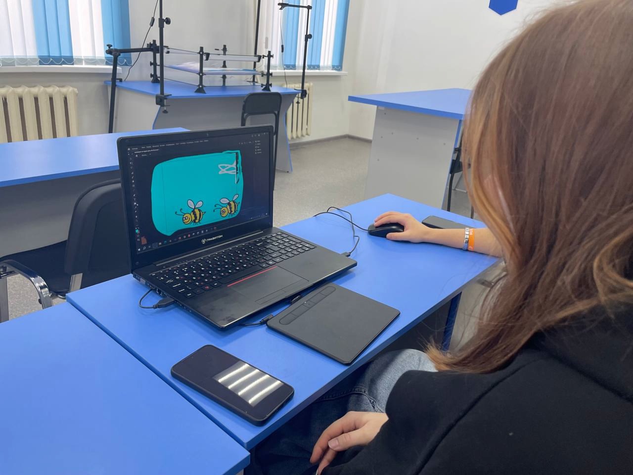 Тема занятия: "Графический дизайн, анимация, мультипликация". Студенты познакомились с возможностями создания графических объектов и разработки проектов при помощи графических планшетов и программы Adobe Animate. Знания и навыки отработали на конкретных практических заданиях. Занятия по графическому дизайну, анимации и мультипликации проводятся под руководством преподавателя Ильнура Мухаметрахимов