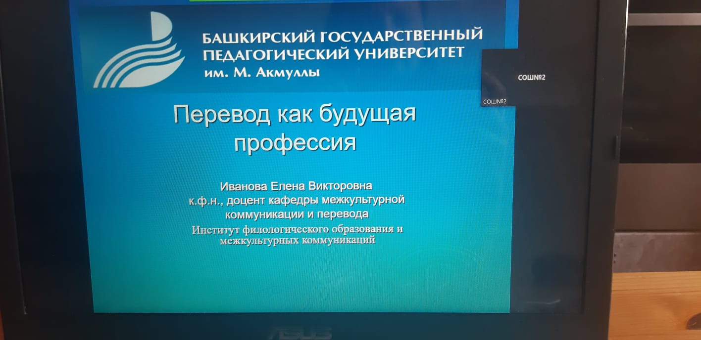 В рамках профориентационной работы со школьниками республики 15 марта была организована встреча с учениками 10-11 классов МОБУ Средняя общеобразовательная школа №2 города Баймак. Доцент кафедры межкультурной коммуникации и перевода Елена Викторовна Иванова обсудила с учащимися такие темы как "Перевод как будущая профессия", "Основные аспекты переводческой деятельности", "Человек или компьютер?". Школьники проявили живой интерес, активно задавали вопросы по обучению в нашем вузе и жизни студентов.