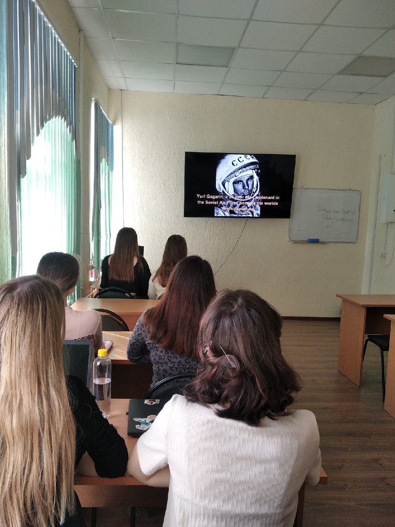 В честь этого дня преподаватели кафедры межкультурной коммуникации и перевода Васина Елена Анатольевна и Иванова Елена Викторовна провели несколько специальных занятий на 1-4 курсах в рамках практического курса английского языка, где студенты смогли увидеть видеоролики о полётах в космос и сделать презентации на космическую тематику.
