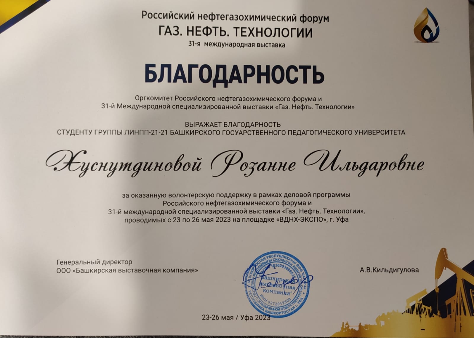 23 – 26 мая 2023 г. в Уфе в рамках Российского нефтегазохимического форума проходила XXXI Международная специализированная выставка «Газ. Нефть. Технологии - 2023».