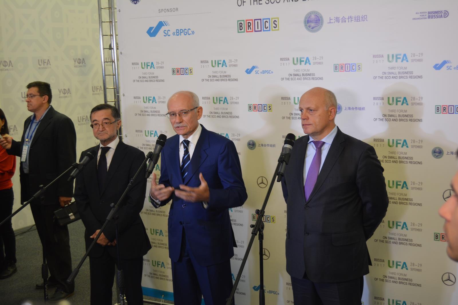 28-29 сентября в Уфе прошёл Третий форум малого бизнеса регионов стран-участниц ШОС и БРИКС. В данном мероприятии приняли участие свыше 1300 делегатов из 44 регионов России и 13 стран, в том числе из Бразилии, Китайской Народной Республики, Гонконга, Индии, Ирана, Южно-Африканской Республики, Германии, Швейцарии, Латвии, Казахстана, Кыргызстана, Таджикистана.