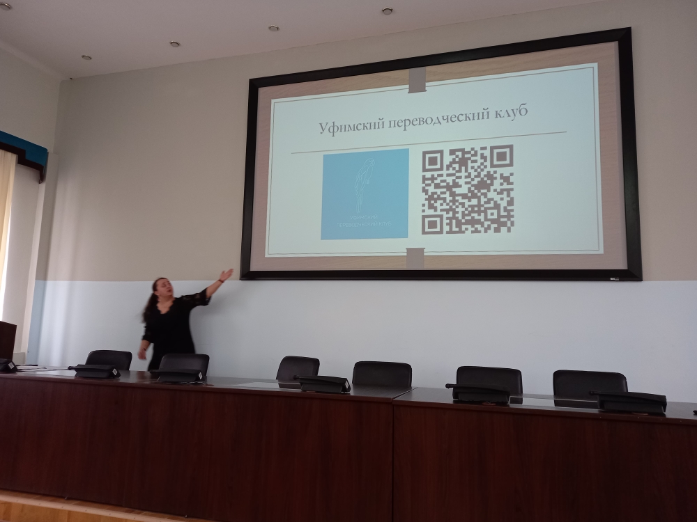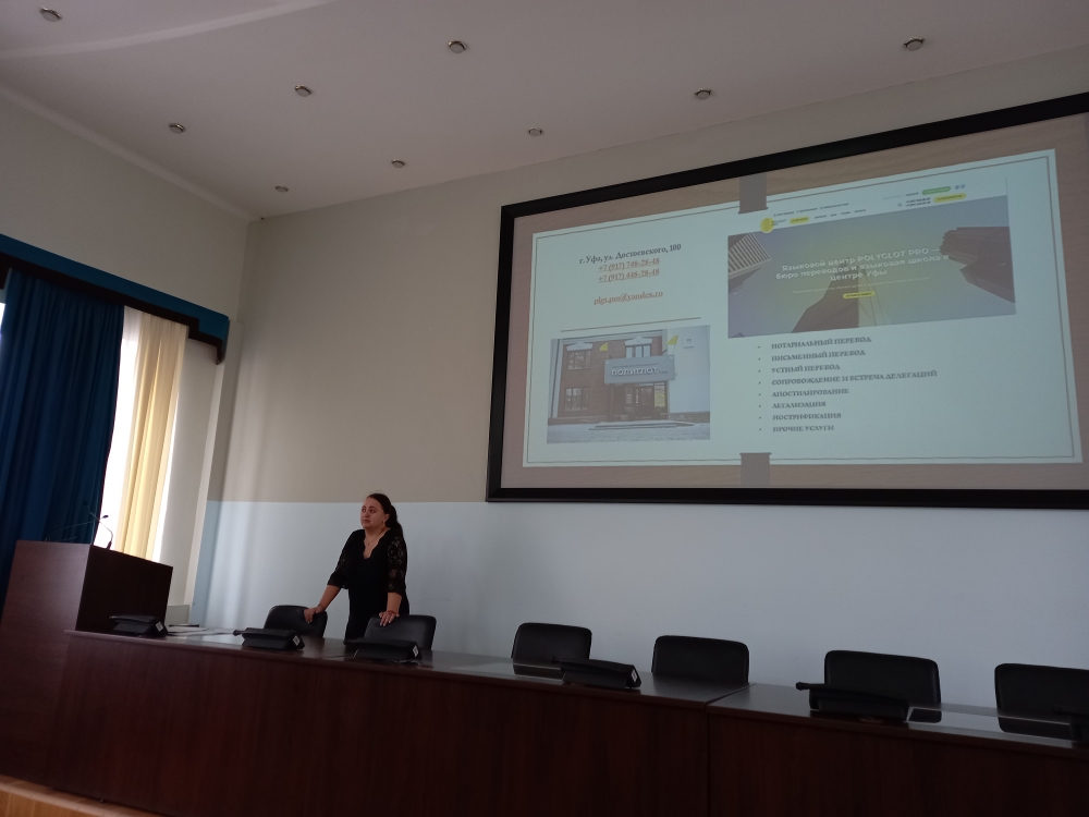 Елена Анатольевна поделилась ценным опытом, связанным с работой переводчика, рассказала о принципах работы в бюро перевода, возможностях трудоустройства, критериях, предъявляемых к резюме, и пригласила студентов к участию в проектах по лингвистическому сопровождению значимых мероприятий в РБ и в мероприятиях Уфимского переводческого клуба.