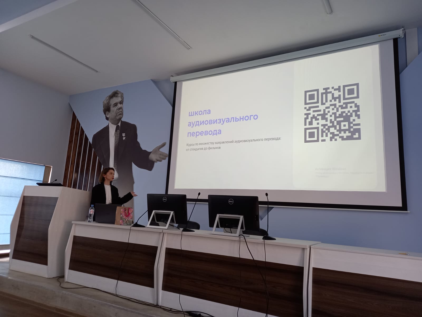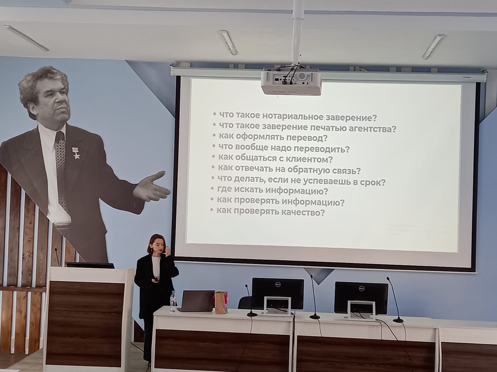 С презентацией о выпускниках кафедры, работающих переводчиками, выступила и.о. зав. кафедрой межкультурной коммуникации и перевода, к.ф.н., доцент Ю.Р. Юсупова.