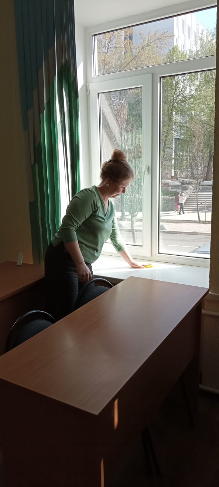 Преподаватели и сотрудники кафедры межкультурной коммуникации и перевода присоединились к мероприятиям 2025 г. по санитарной очистке города. Начать решили с учебного корпуса №3. 25 и 26 апреля была проведена уборка в преподавательской и аудиториях корпуса, закрепленных за кафедрой – 104, 106 и 307.
