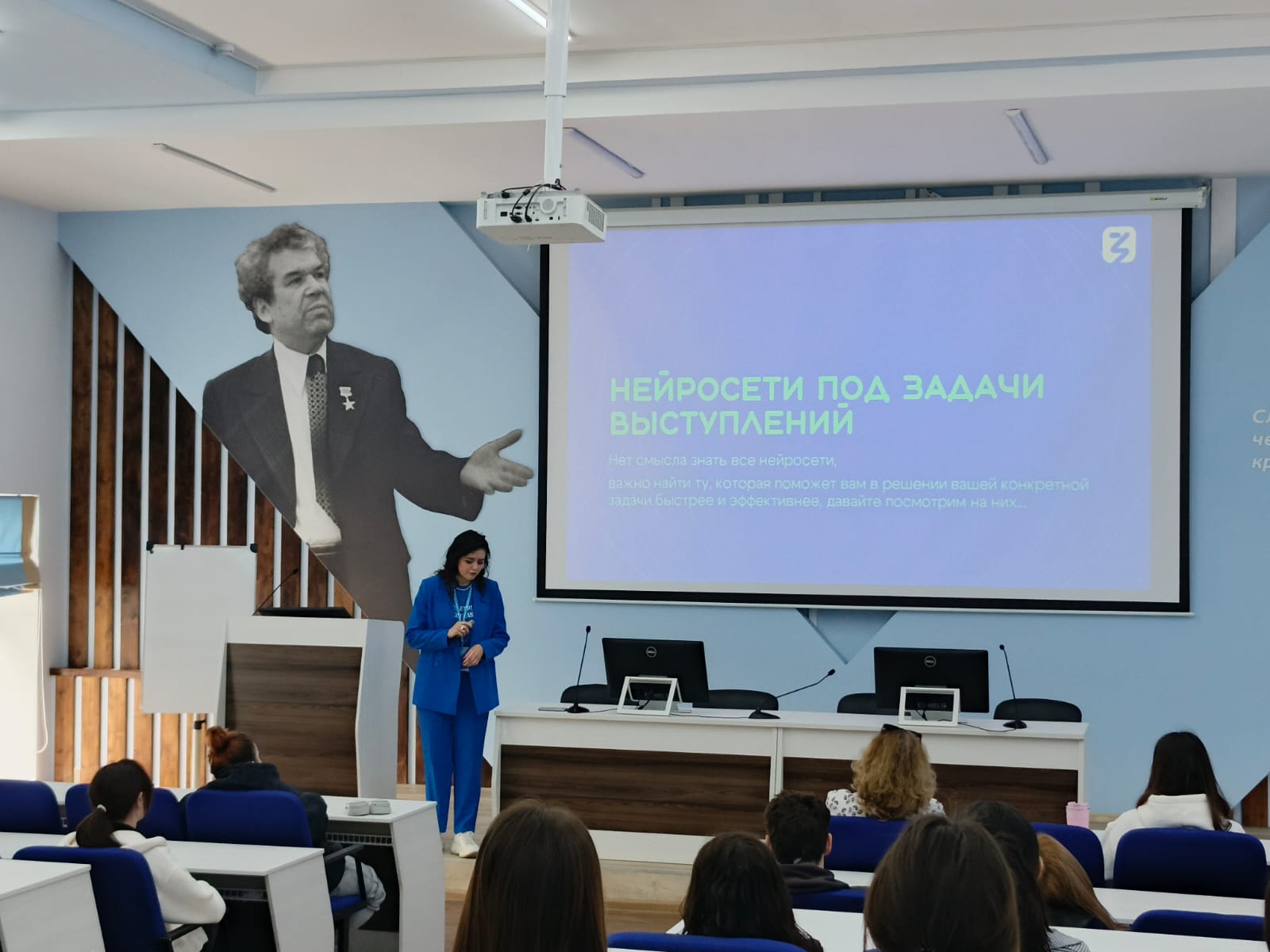 Дилара Ильдаровна рассказала об основных ошибках спикеров, о том, как вовлечь слушателей и удерживать их внимание во время выступления, как правильно и эффективно выстроить структуру выступления с учетом целевой аудитории. Лектор поделилась полезной информацией об интернет-ресурсах, которые можно использовать при подготовке презентаций и провела небольшой мастер-класс по развитию ораторских навыков.