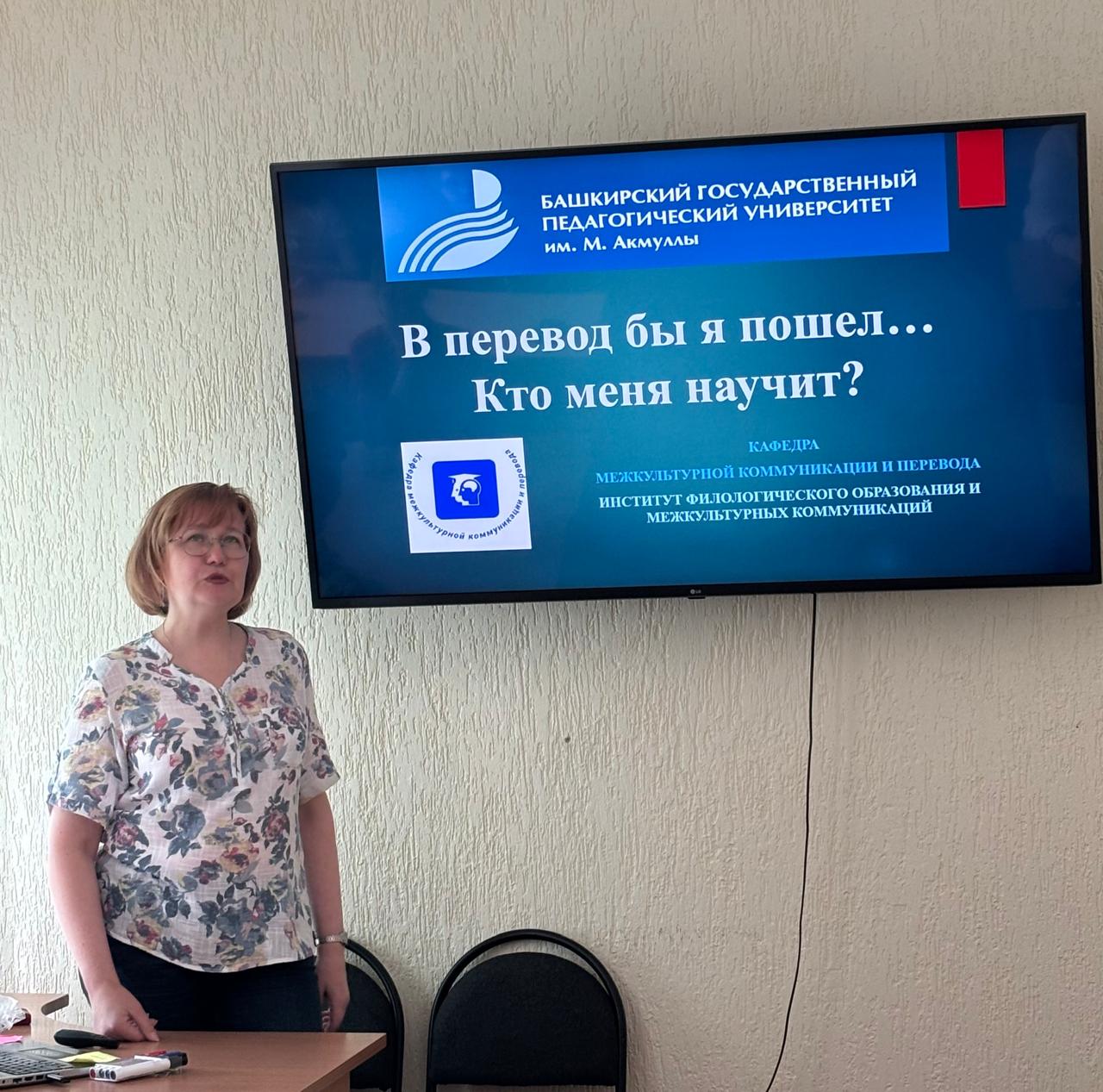 Заведующая кафедрой романо-германской филологии и методики обучения иностранным языкам Буркова Т.А. рассказала о вступительных испытаниях и баллах ЕГЭ, необходимых для поступления в БГПУ им. М.Акмуллы, проектах, проводимых в ИФОМК.