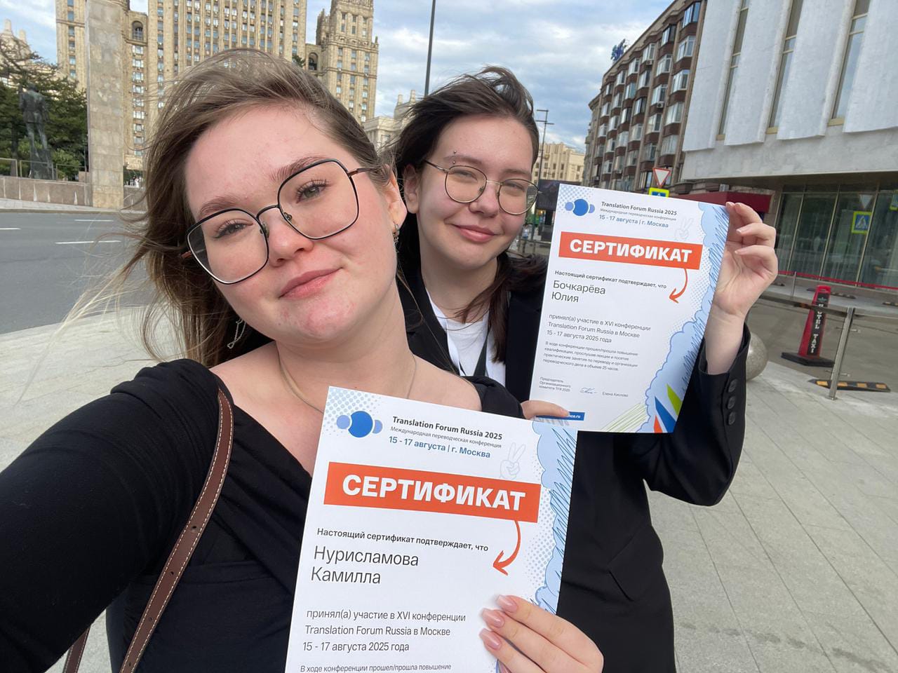 В этом году в конференции приняли участие две студентки 2 курса направления Лингвистика («Перевод и переводоведение») – Нурисламова Камилла и Бочкарева Юлия (ЛИНПП-22-24), а также выпускники этого направления – Булат Данилов (представитель оргкомитета конференции, модератор секций), Маргарита Сыроватская (спикер, участница круглого стола), Аделина Гатауллина, Елена Чудинова, Сания Шамигулова и выпускница программы профессиональной переподготовки «Перевод и переводоведение» Марина Хазиева. Тамара Иткулова (выпускница направления Лингвистика 2021 года) осуществляла синхронный перевод докладов.
