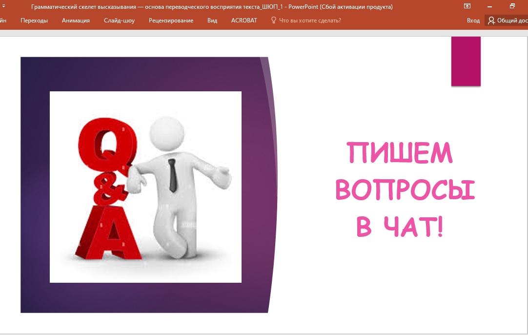 После этого и.о. зав. кафедрой межкультурной коммуникации и перевода, к.филол. наук, Юлия Рустэмовна Юсупова рассказала  об основных задачах и важности работы переводчика в современном мире и провела первое занятие на тему «Грамматический скелет высказывания — основа переводческого восприятия текста». В конце занятия ребята задавали вопросы по теме занятия и получили задание, которое они будут выполнять в течение следующей недели.