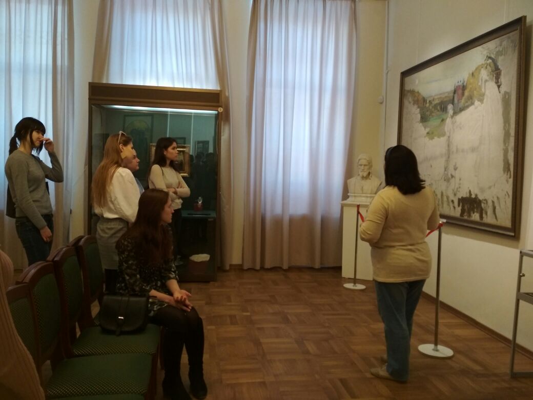 В конце февраля студенты 3 курса переводческого отделения в рамках учебно-воспитательной работы посетили Башкирский государственный художественный музей имени М. В. Нестерова. Там они провели итоговое занятие по теме «Искусство» и смогли расширить свои знания по данной тематике. А студентам группы 305Л удалось также  попрактиковаться в технике синхронного перевода, так как с ними музейную экспозицию посетили еще и американские студенты, изучающие русский язык при кафедре МК и Перевода БГПУ им. М.Акмуллы.