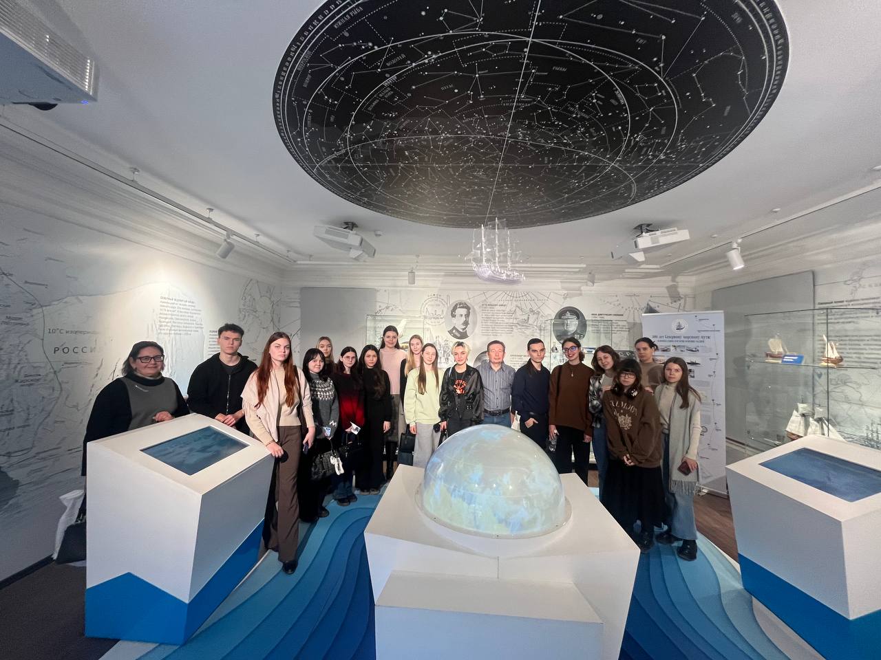 04 декабря 2025 года студенты 1 курса, обучающиеся по направлению 45.03.02 Лингвистика, направленность «Перевод и переводоведение» (группы ЛИНПП-11-25 (п/г 1) и ЛИНПП-12-25 (п/г 2)), под руководством старшего преподавателя кафедры межкультурной коммуникации и перевода В.И. Лившиц и ассистента Н.Е. Мурзанаевой посетили Музей полярников им. В.И. Альбанова. Там они прослушали лекцию известного уфимского ученого-мифолога, педагога, доцента УУНиТ, писателя Александра Сергеевича Иликаева «Мифы Севера: от Скандинавии до Чукотки».