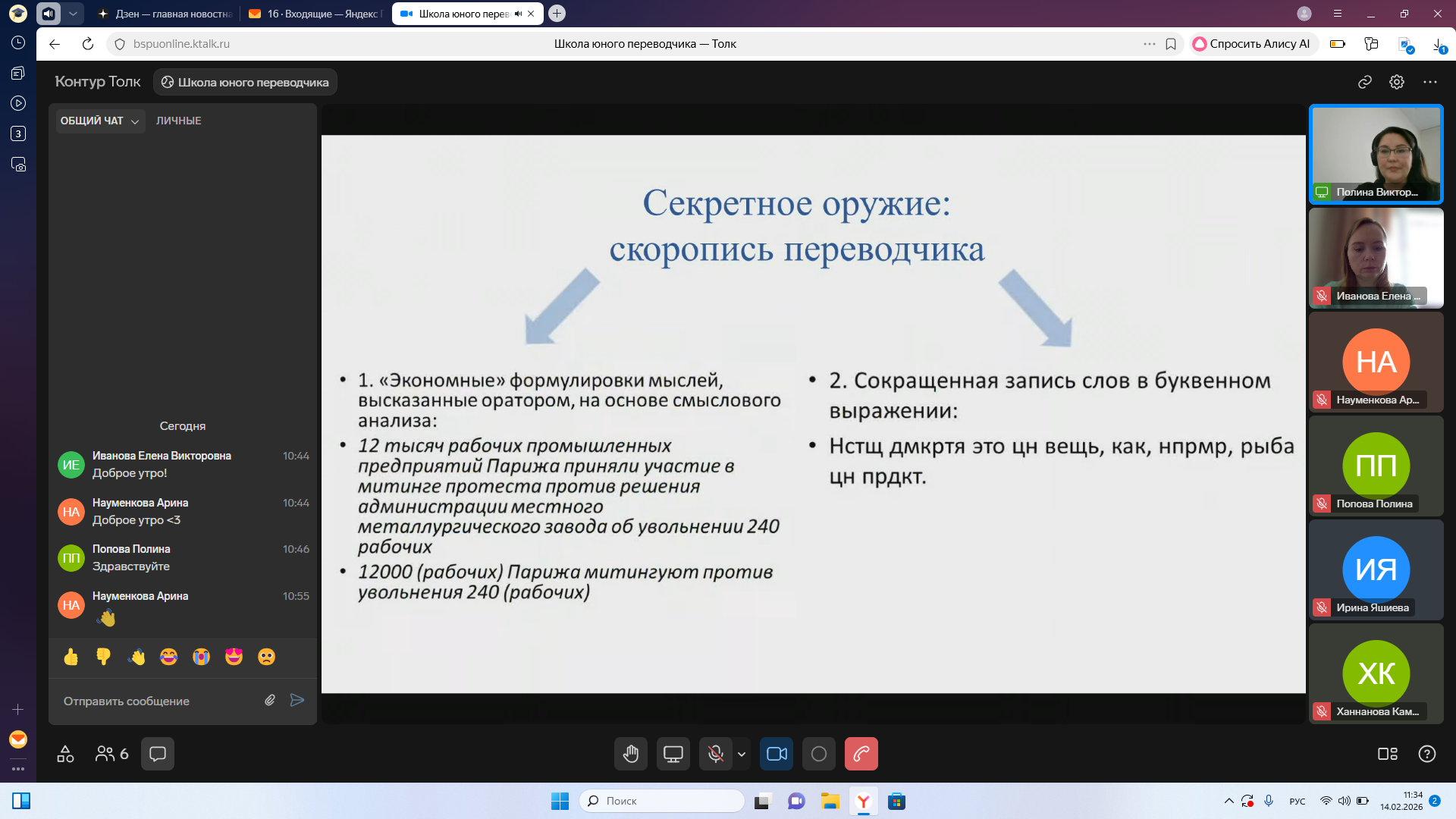 Особый интерес у ребят вызвали переводческая скоропись и символы переводческой семантографии. В конце занятия ребятам были продемонстрированы короткие видеоролики, где был показан процесс работы переводчика-синхрониста.