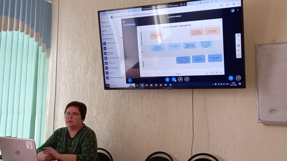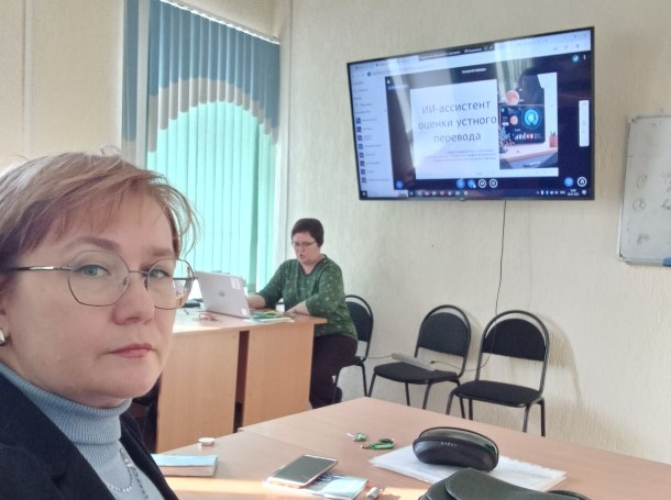 В ходе проведенных в гибридном формате НМС Альфия Гаптелхановна Губайдуллина и Полина Викторовна Семенова презентовали проект «ИИ-ассистент оценки устного перевода», разработанный ими после прохождения курсов повышения квалификации «Генеративный искусственный интеллект для вузов: проектирование решений» в Уральском федеральном университете имени первого Президента России Б.Н. Ельцина.