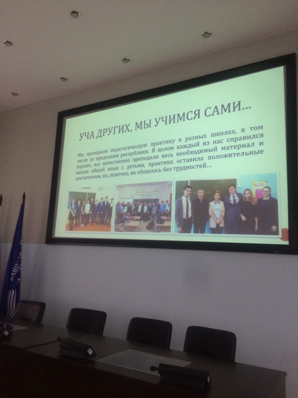 19 декабря 2019 г. состоялась итоговая конференция, на которой были проанализированы основные результаты педагогической практики. Студенты-филологи подготовили отчёты, проиллюстрировав их яркими, содержательными презентациями. Будущие учителя русского языка и литературы отметили, что практика на 5 курсе прошла успешно. Это подтвердили руководители практики, подчеркнув, что студенты чувствовали себя уверенно на уроках, хорошо ориентировались в учебном материале, правильно структурировали конспекты занятий, использовали современные инновационные технологии. Всё это позволило практикантам получить высокие оценки учителей-наставников.
