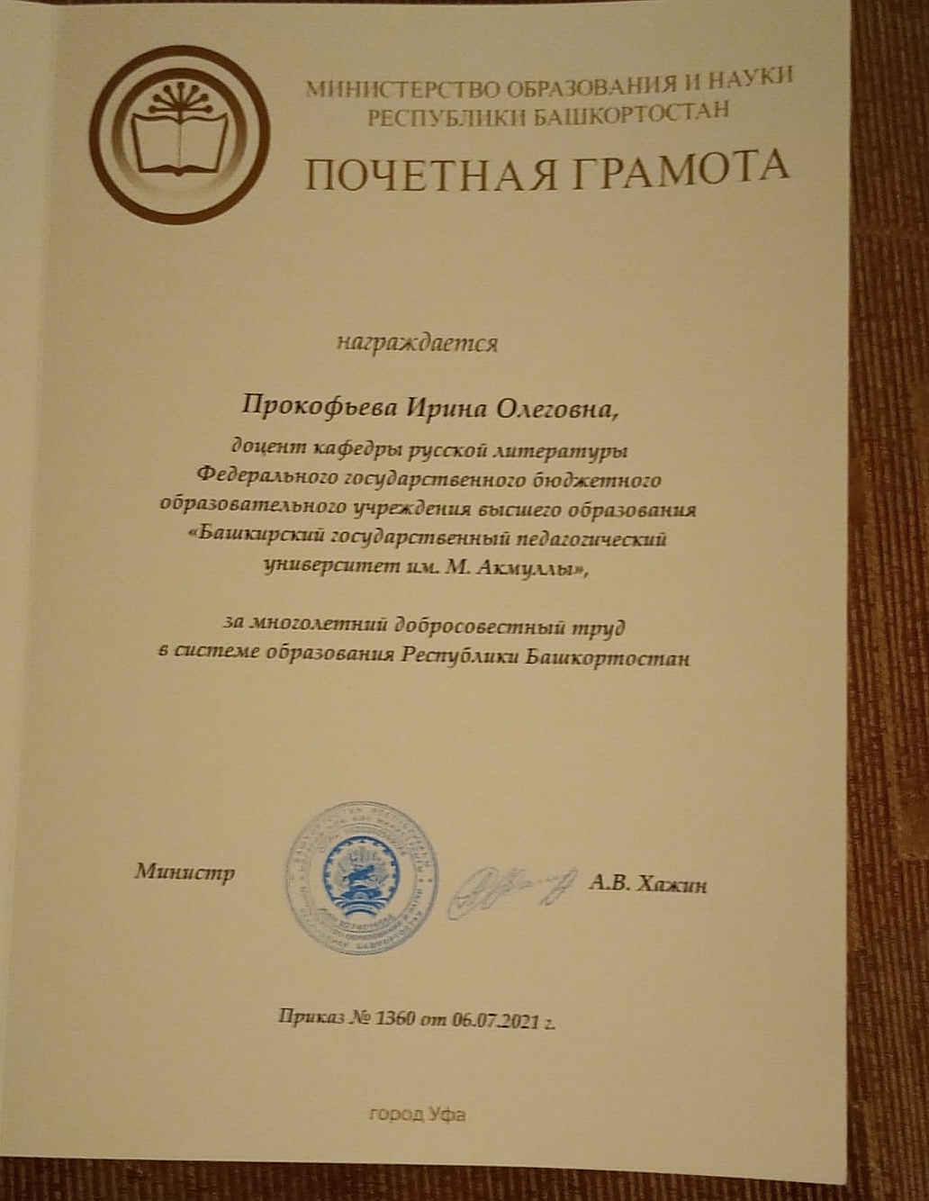 Поздравляем доцента кафедры русской литературы Прокофьеву Ирину Олеговну с вручение почетной грамоты от Министерства образования и науки РБ за многолетний добросовестный труд в системе образования Республики Башкортостан! Желаем дальнейших творческих успехов!