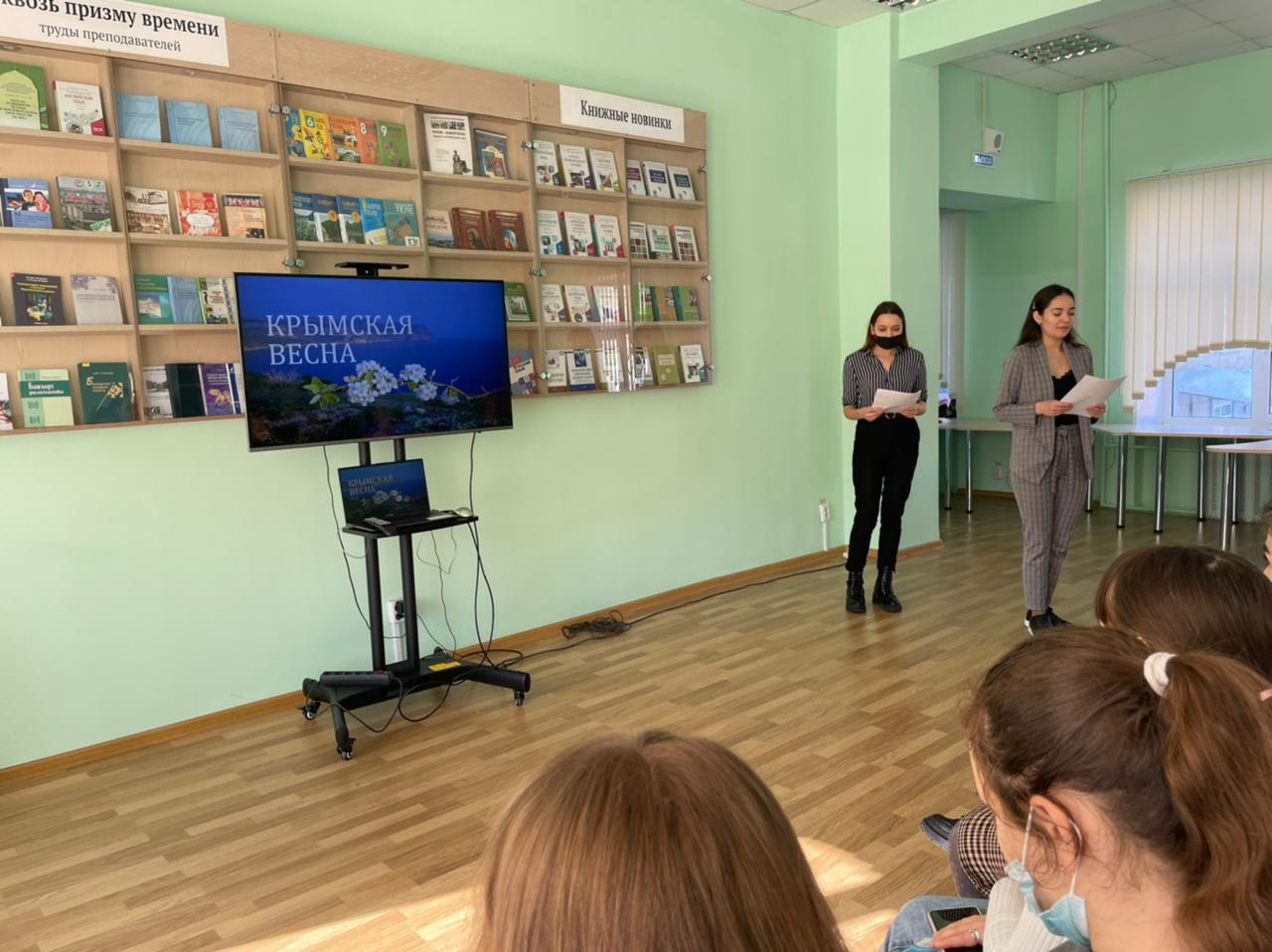 23 марта 2022 в читальном зале Института филологического образования и межкультурных коммуникаций БГПУ им. М. Акмуллы состоялись поэтические чтения «Крымская весна». Мероприятие было организовано доцентом кафедры русской литературы А.А. Файзрахмановой при содействии актива студенческого литературного объединения «КоРифеи».