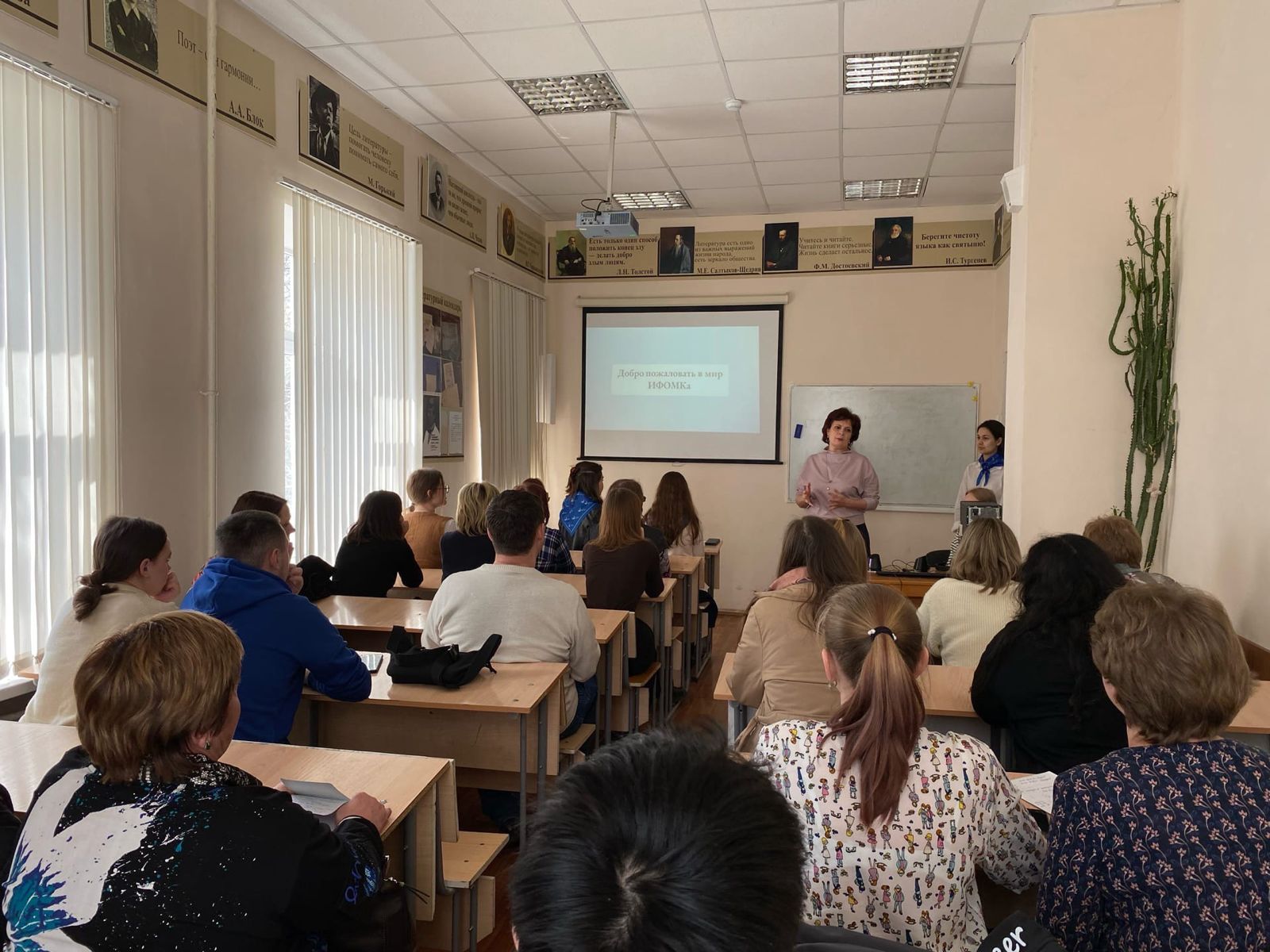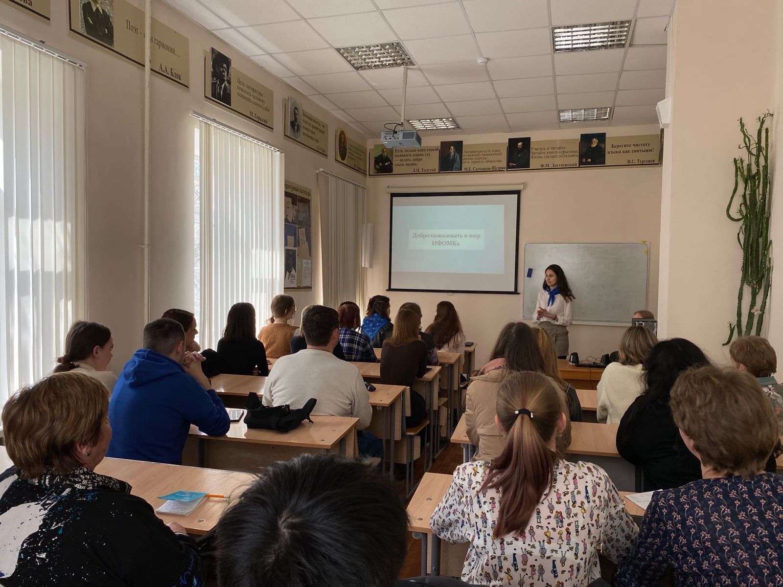9 апреля 2022 года в Институте филологического образования и межкультурных коммуникаций прошел День открытых дверей. И.о. заведующего кафедрой русской литературы Ю.А. Шанина  совместно со студентами 2 курса ПОРЯЛ на одной из рабочих площадок мероприятия представила презентацию образовательной программы направления подготовки «Педагогическое образование» профиля «Русский язык и литература». Будущим абитуриентам рассказали о порядке вступительных испытаний, содержании и перспективах программы. Студенты 2 курса подробно рассказали о культурно-просветительских проектах кафедр русской литературы и русского языка, теоретической и прикладной лингвистики, провели литературную викторину, ответили на многочисленные вопросы абитуриентов и родителей.