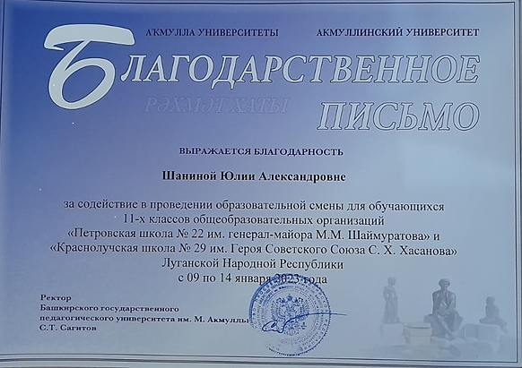 С 9 по 14 января 2023 года в Башкирском государственном педагогическом университете им. М. Акмуллы проходила зимняя образовательная смена для старшеклассников из Луганской Народной Республики.