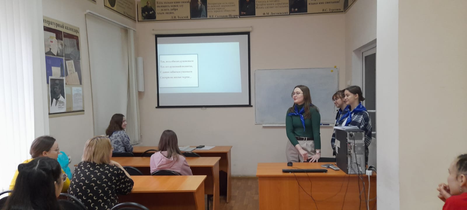 25 марта 2023 года в Институте филологического образования и межкультурных коммуникаций прошел День открытых дверей. Заведующая кафедрой русской литературы Ю.А. Шанина  совместно со студентами 3 курса ПОРЯЛ на одной из рабочих площадок мероприятия провела  презентацию образовательной программы направления подготовки «Педагогическое образование» профиля «Русский язык и литература». Будущим абитуриентам рассказали о порядке вступительных испытаний, содержании и перспективах программы. Студенты 3  курса подробно рассказали о культурно-просветительских проектах кафедр русской литературы и русского языка, теоретической и прикладной лингвистики, провели литературную викторину, ответили на вопросы абитуриентов и родителей.