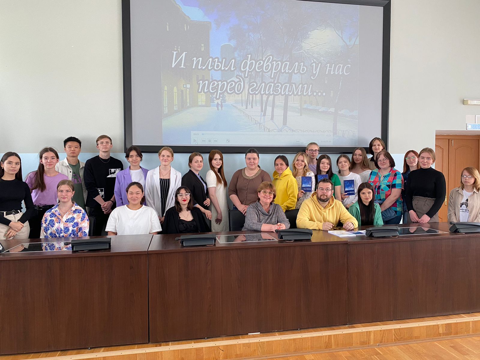 Практика завершилась защитой культурно-просветительских проектов. Шесть подгрупп подготовили видео презентации, посвященные популяризации современной русской литературы. Свои проекты студенты защитили в присутствии "героев" своих видеофильмов  - современных российских прозаиков и поэтов: Нины Ягодинцевой (г. Челябинск), Юрия Татаренко (г. Новосибирск), Максима Замшева (г. Москва), Ильи Кочергина (г. Москва), Андрея Тимофеева (г. Москва).