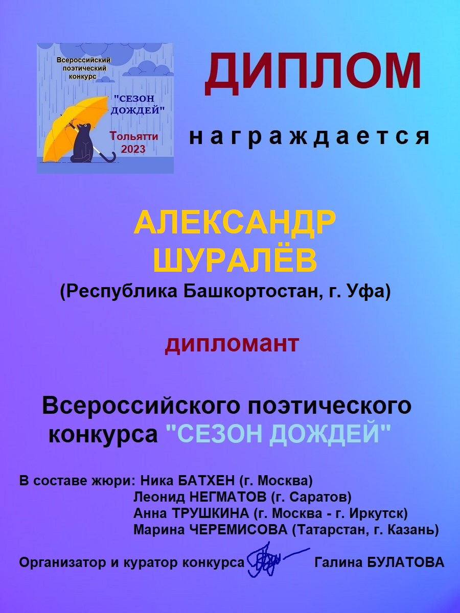 Профессор А.М.Шуралёв стал дипломантом Всероссийского поэтического конкурса «Сезон дождей»