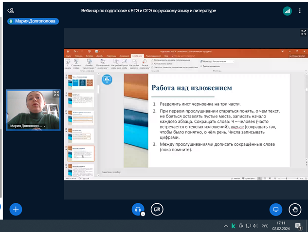 2 и 3 февраля 2024 года на базе Акмуллинского университета состоялся Республиканский научно-методический онлайн-семинар «Система подготовки обучающихся к ГИА-2024 по русскому языку и литературе в свете обновленных требований», организованный по инициативе кафедр русской литературы и русского языка теоретической и прикладной лингвистики. Его главные задачи – совершенствование подготовки к итоговым испытаниям и оказание методической помощи школам в условиях обновления образовательного стандарта и требований к итоговой аттестации выпускников средних образовательных учреждений. В качестве спикеров выступили доценты и преподаватели Института филологического образования и межкультурных коммуникаций Г.М. Курбангалеева, М.В. Долгополова, М.О. Кучумова.