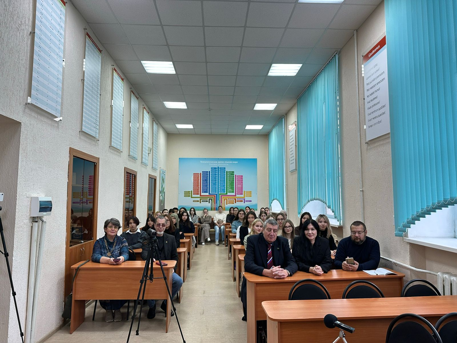 В гости к студентам-филологам приехали заместитель главного редактора московской «Литературной газеты», председатель русского литературного общества, главный редактор интернет-журнала «Культнавигатор РФ», составитель Русской литературной Энциклопедии, главный редактор книжной серии «Библиотека Русского географического общества» Александр Александрович Чистяков и пресс-секретарь «Литературной газеты» и Русского Литературного общества Вероника Евгеньевна Одинцова. На круглом столе также присутствовали доцент кафедры русской литературы И.О. Прокофьева, новосибирский поэт, переводчик, журналист Ю.А. Татаренко, уфимский поэт-сатирик В.В. Кузьмичёв.
