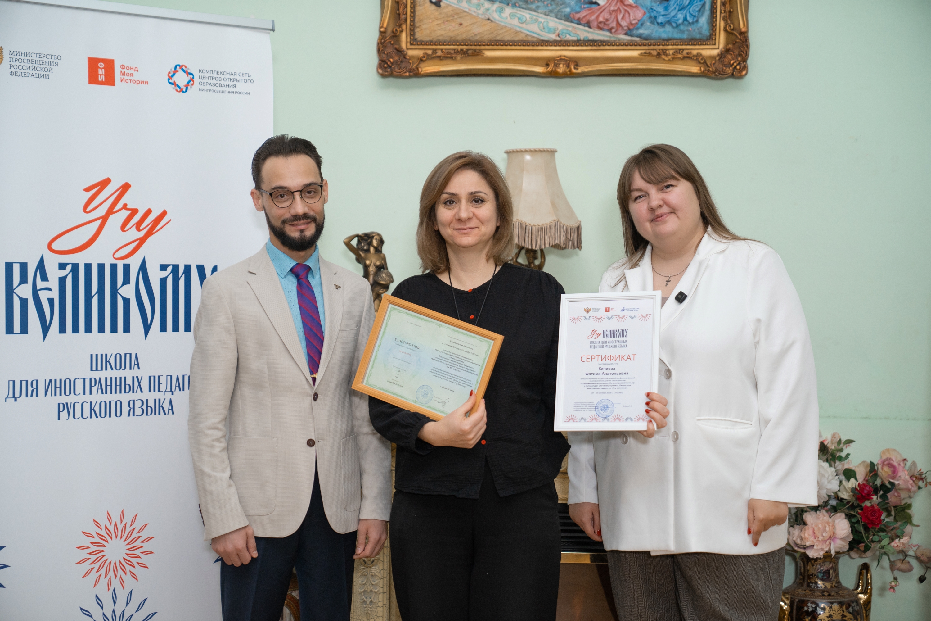В завершение мероприятия первый заместитель директора Фонда «Моя история» Анастасия Калугина и директор Акмуллинского технопарка Сергей Переверзев вручили педагогам из Южной Осетии сертификаты и удостоверения о прохождении обучения.