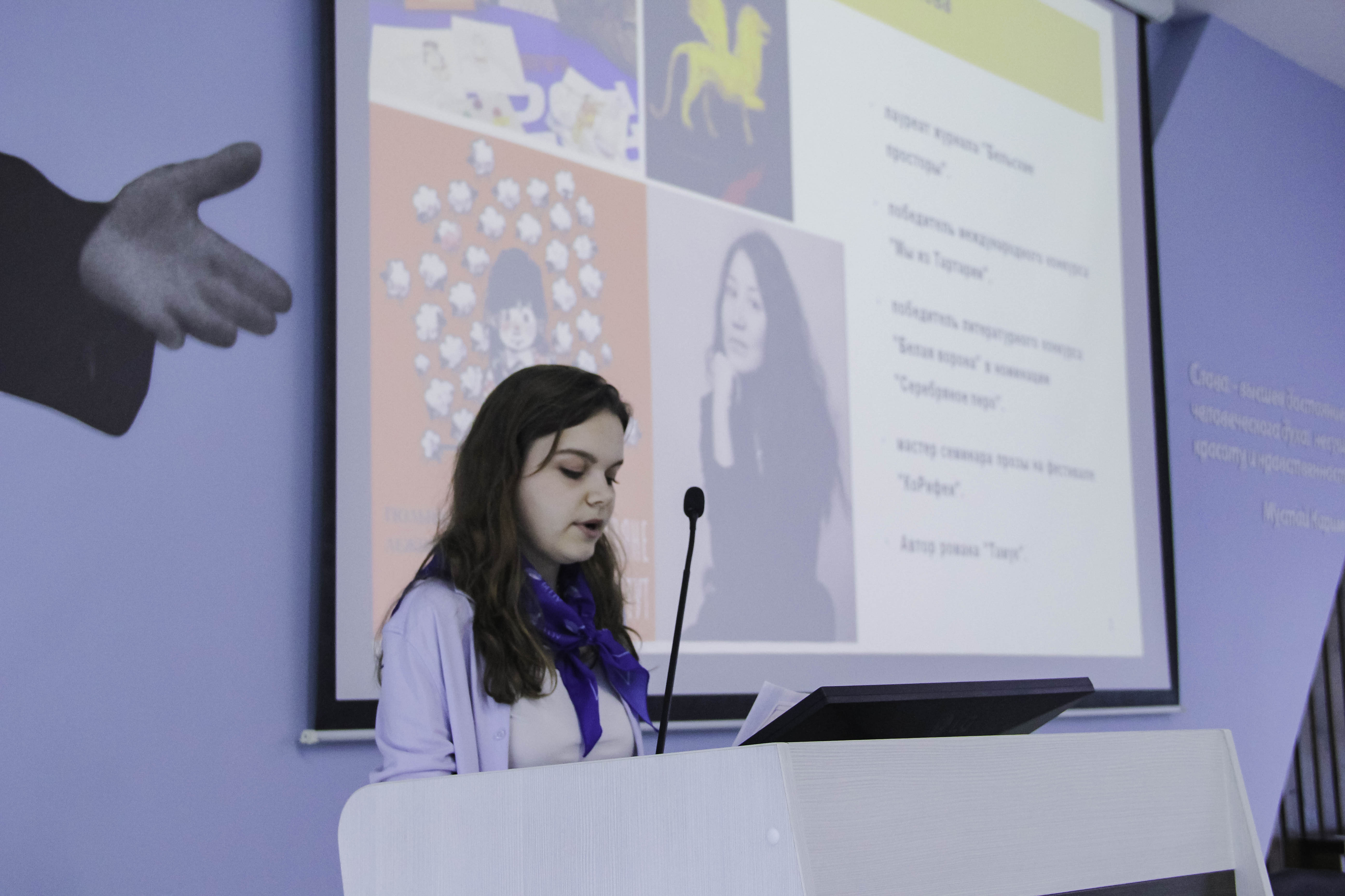 Защита научных работ в формате секционных заседаний научно-практической конференции давно практикуется в ИФОМК и вызывает отклик среди студентов. В этом году особый интерес конференция вызвала у иностранных студентов. Для них участие в таком событии стало не только возможностью представить свои исследования, но и ценным опытом погружения в российскую научную среду. Своими впечатлениями поделилась Анеля Жумагулова, студентка 2 курса, обучающаяся по бакалаврской программы «Русский язык и литература» и прибывшая из Республики Кыргызстан: «Хочется отметить высокий уровень организации конференции: сразу видно, что организаторы приложили большие усилия и продумали каждую деталь — от соблюдения регламента до атмосферы в аудиториях. Программа оказалась очень насыщенной и познавательной. Я узнала много новой информации, связанной с творчеством известных мне писателей, и некоторые произведения захотелось перечитать вновь. Несмотря на естественную усталость к концу мероприятия, я уходила с вдохновением и огромным желанием вновь принять участие в подобных конференциях».