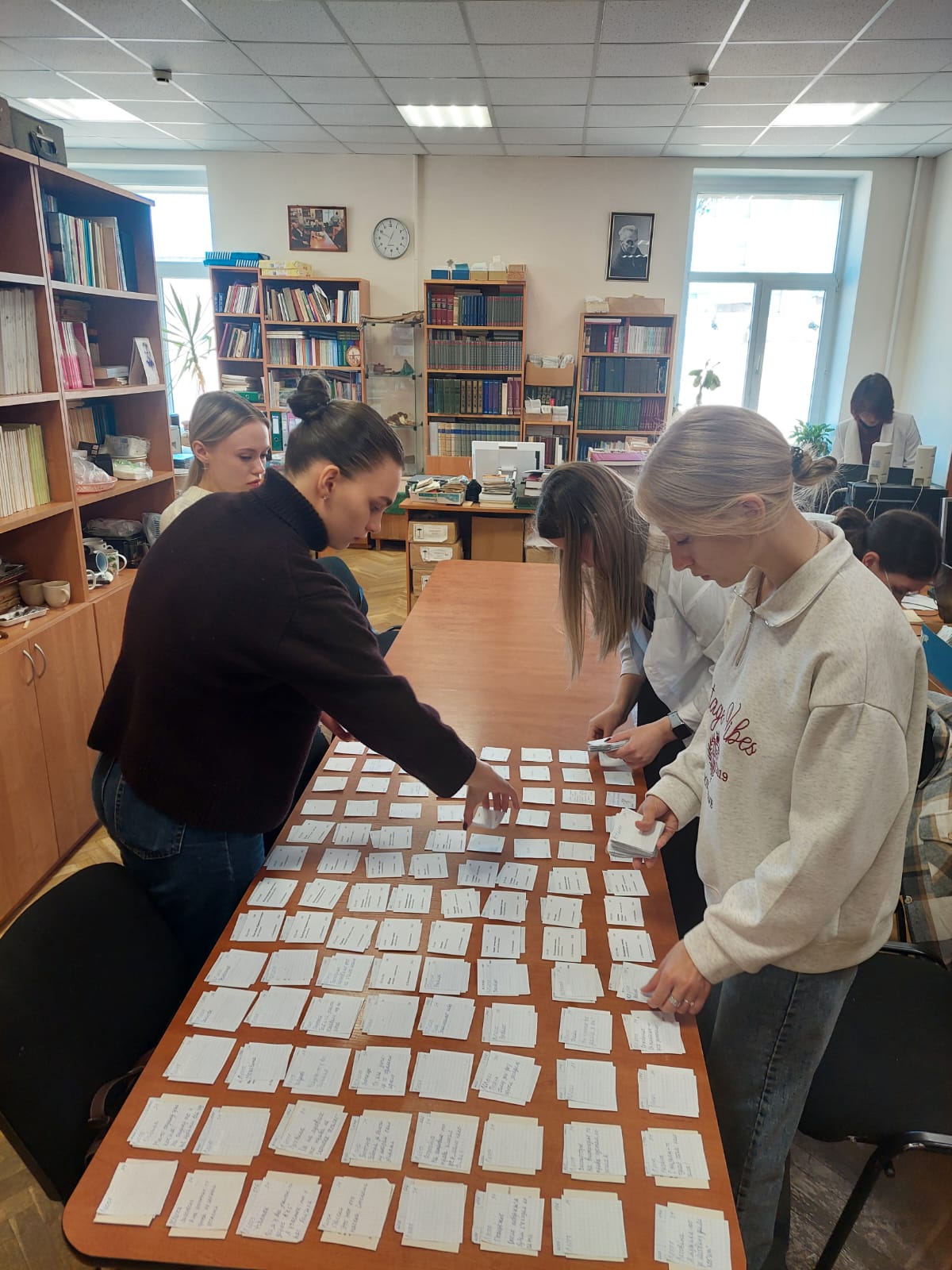 Студенты с большим интересом прослушали вводную лекцию старшего научного сотрудника ИЛИ РАН к.ф.н. М.Д. Корольковой, познакомились с деятельностью Словарного сектора института. В рамках практики второкурсники занимались сортировкой и систематизацией материалов картотеки Лексического атласа русских народных говоров. Ребята показали хороший уровень теоретической подготовки, умение решать поставленные задачи и добросовестное отношение к работе.
