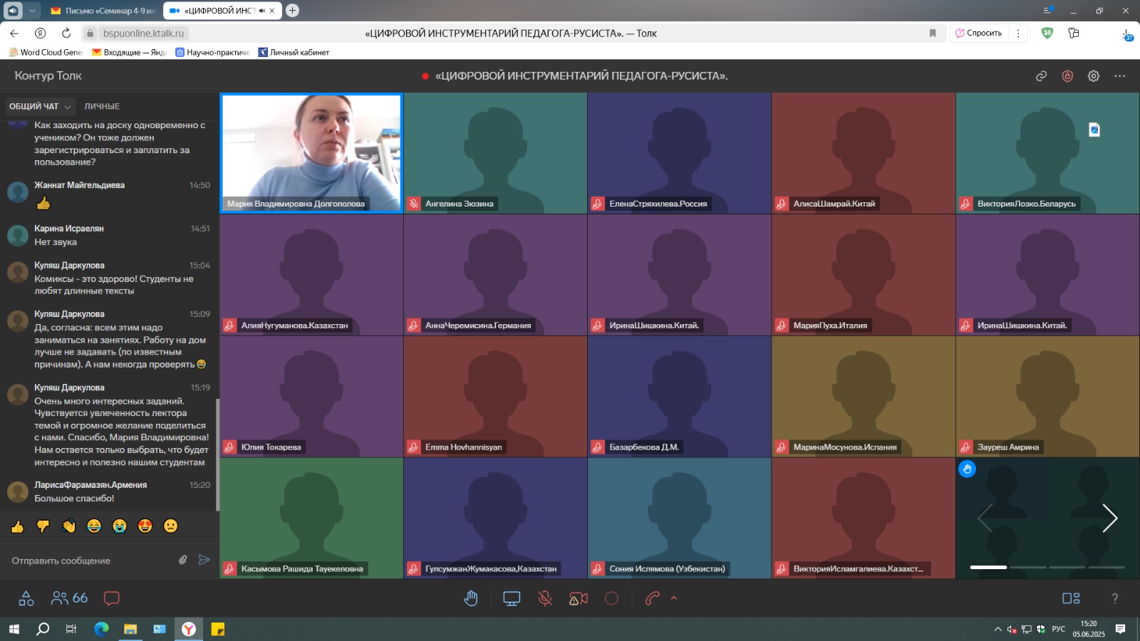 «Все понравилось. Очень много полезной и структурированной информации. Видно, что преподаватели опытные и увлеченные своим делом. Я получила массу идей для уроков. Наиболее полезным оказались конкретные названия платформ и примеры их интеграции в работу с текстом, а также живые примеры из практики, хотелось бы, чтобы таких реальных примеров было больше. Надеемся на дальнейшее развитие данной темы в рамках новых семинаров или углубленных практикумов», - поделилась пожеланием Ленара Ислямова из Узбекистана.