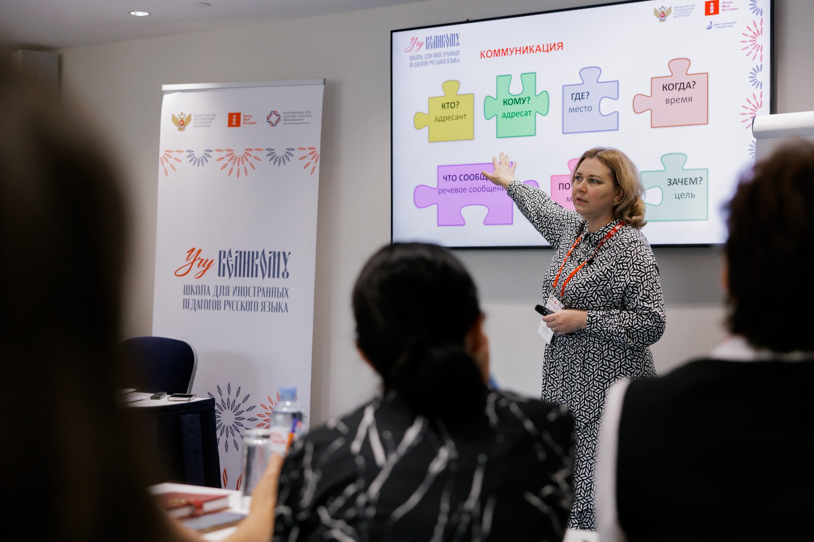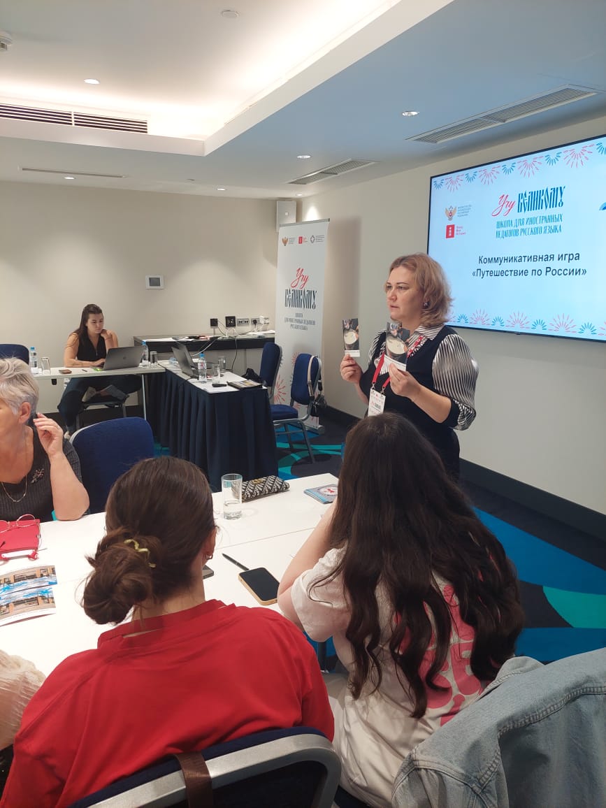 Юлия Сергеевна провела тренинг коммуникативных умений «Секреты успешной профессиональной коммуникации» и коммуникативную игру «Путешествие по России». Заканчивается обучение проектной работой «Культурный код России».