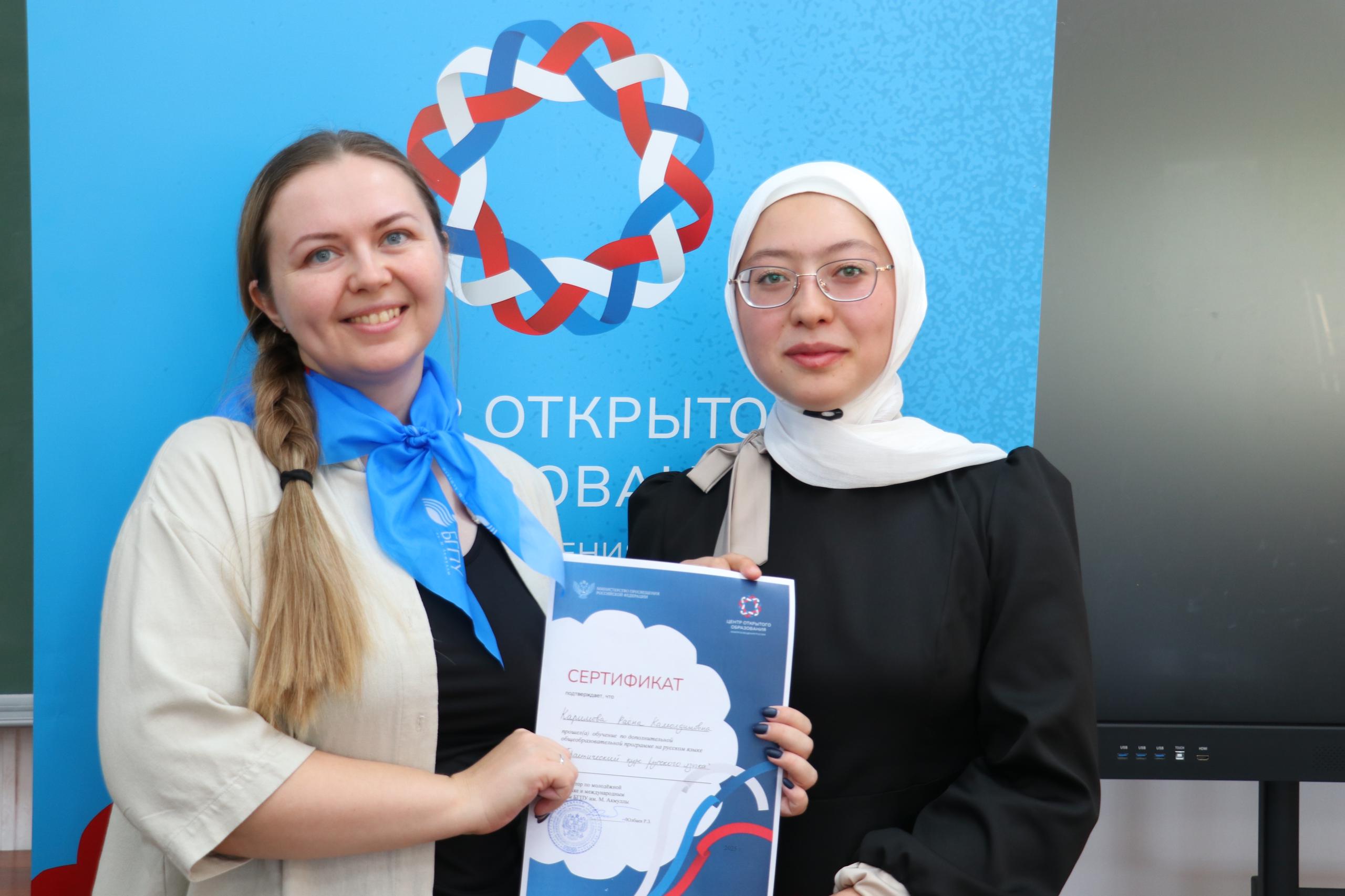 Гулдана Адимбекова: «Курс, проведенный специалистами из России, оказался очень полезным и интересным. Мы получили новые знания и навыки, которые пригодятся в учёбе и будущей профессии. Преподаватели объясняли материал доступно и понятно, всегда были открыты для вопросов. Благодарим организаторов и преподавателей за возможность пройти этот курс».