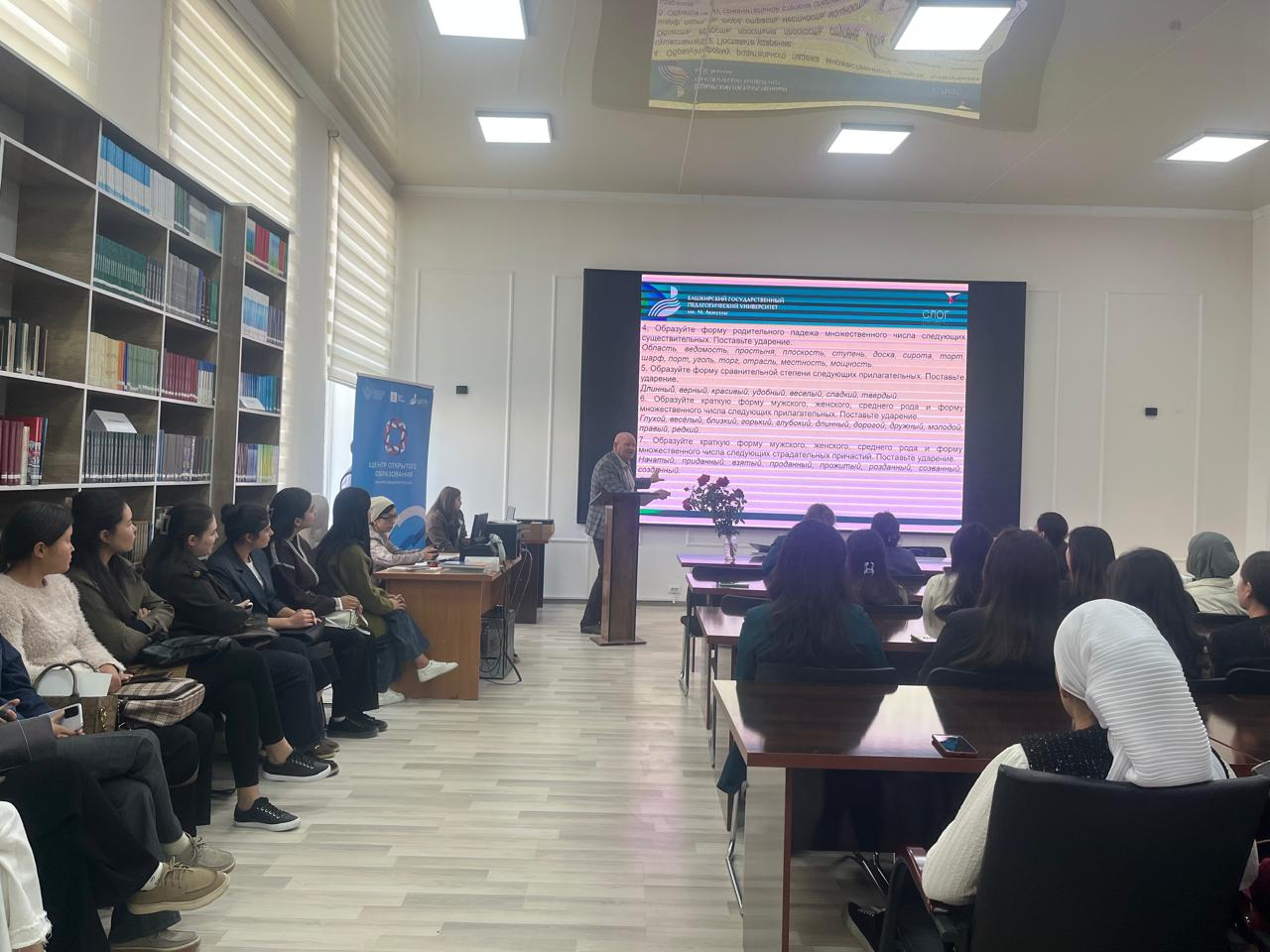 13 октября в Кызыл-Кийском гуманитарно-педагогическом институте, входящем в состав Баткенского государственного университета, состоялся старт курсов по дополнительной общеобразовательной программе «Культура устной и письменной деловой речи». Занятия проводятся на базе Центра открытого образования на русском языке.