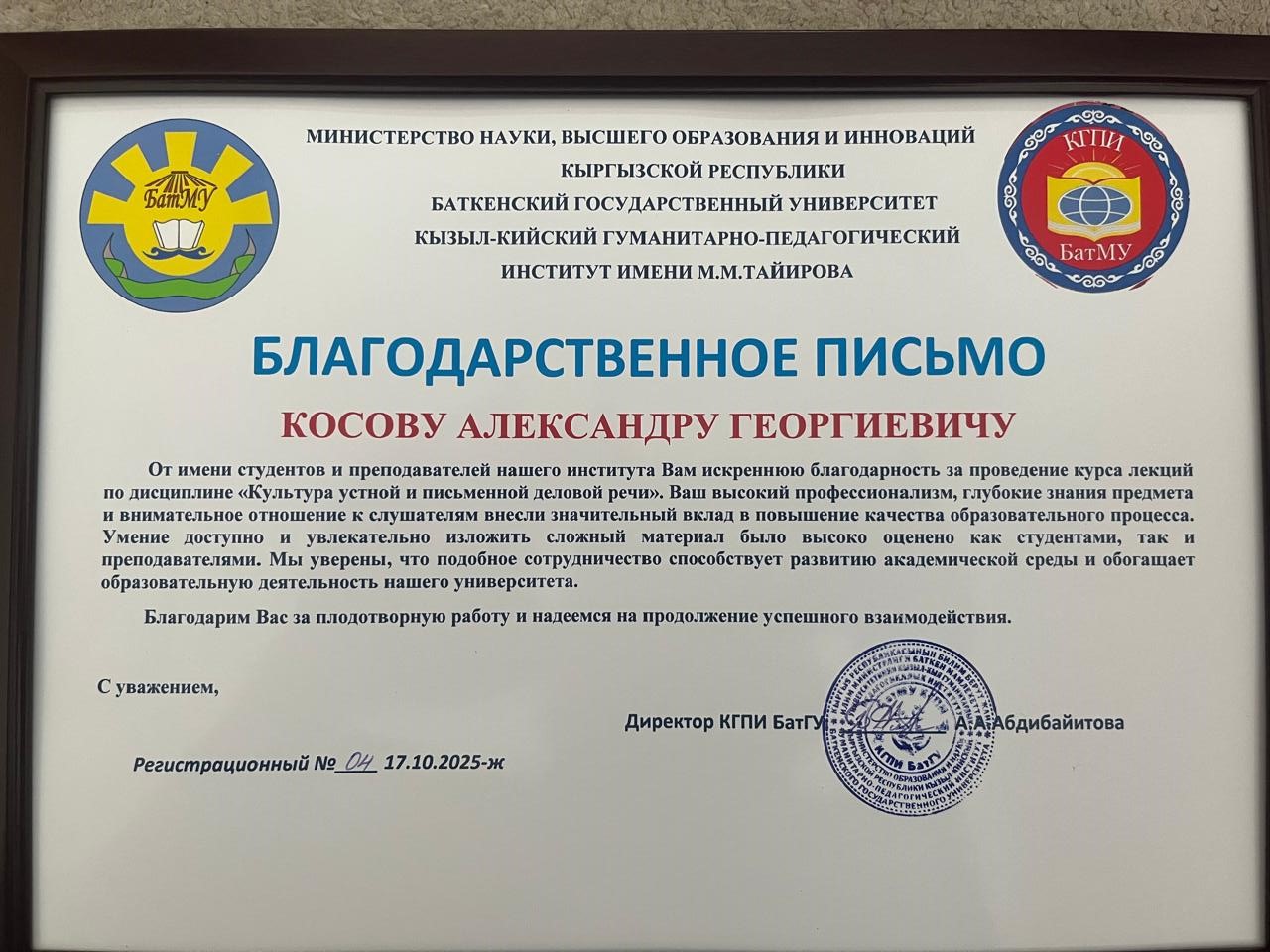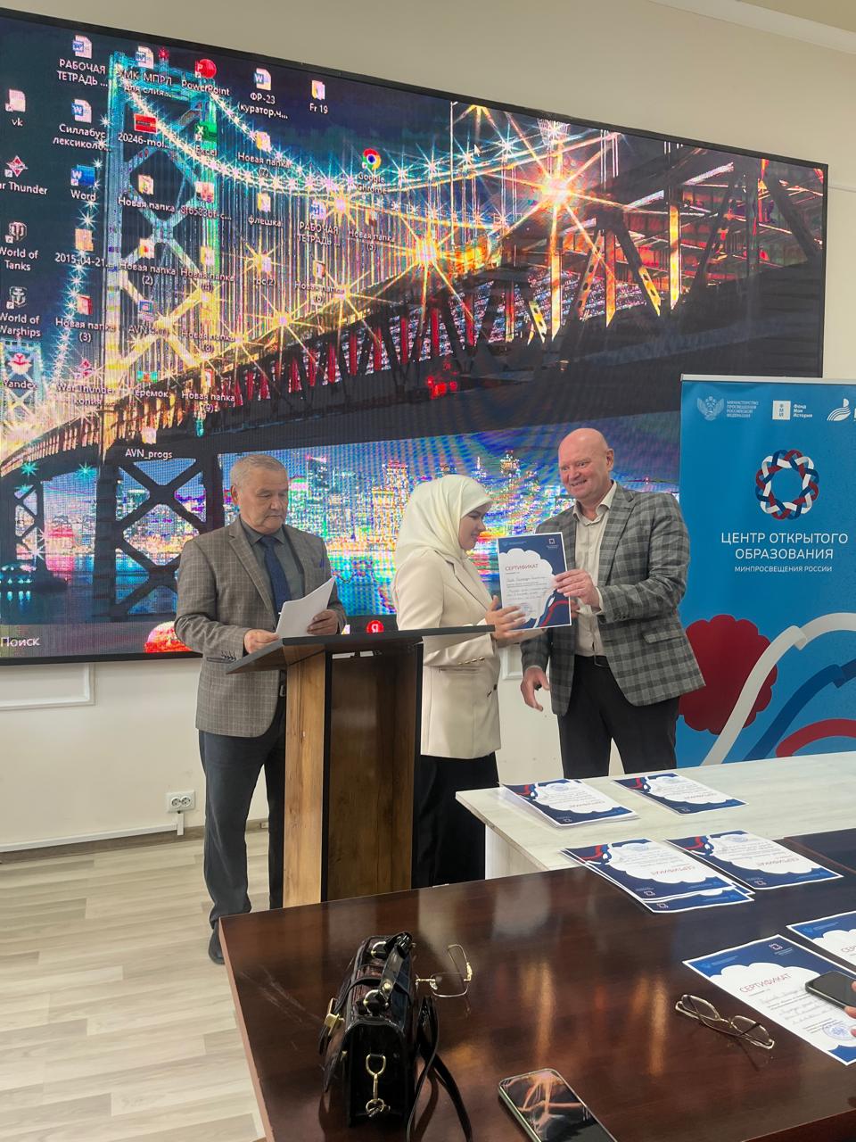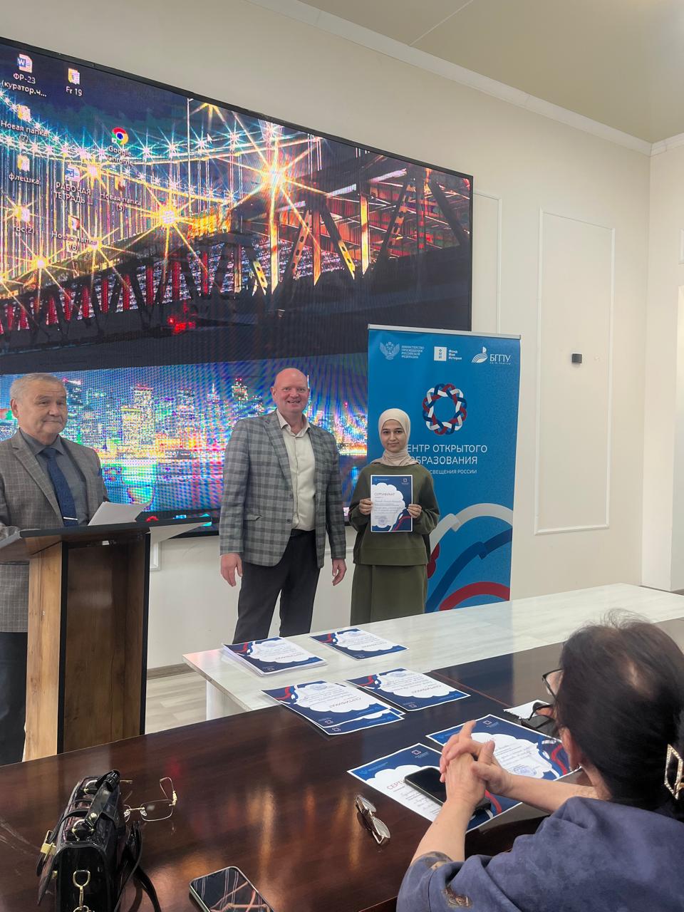 Преподаватель института Масхуда Абдуллаевна Курбанова отметила широкий интерес к курсу среди студентов разных профилей и поблагодарила Александра Косова за профессионализм и преданность делу. Руководство института в знак признательности вручило лектору благодарственное письмо.