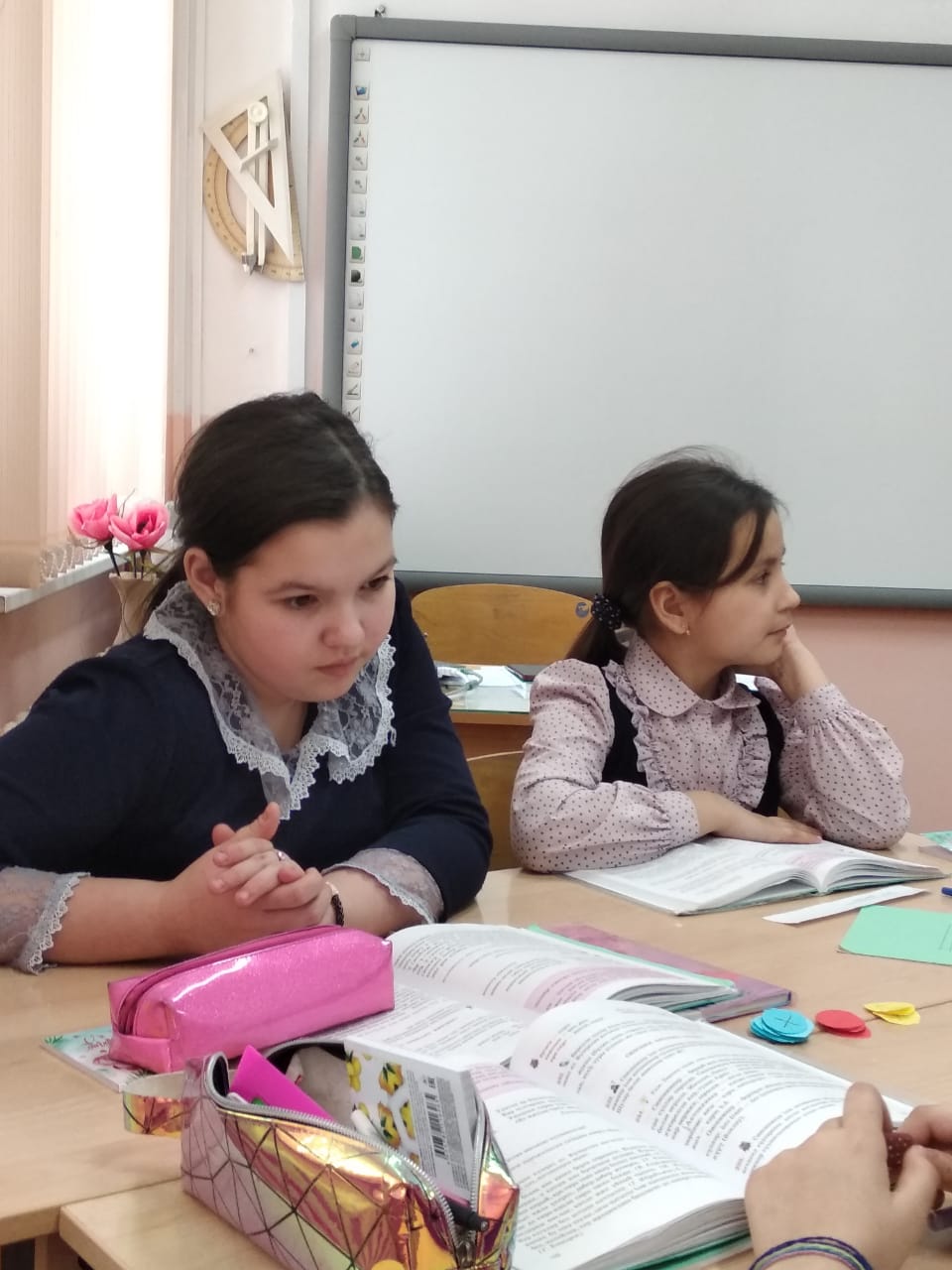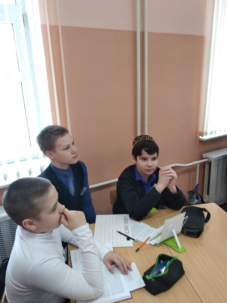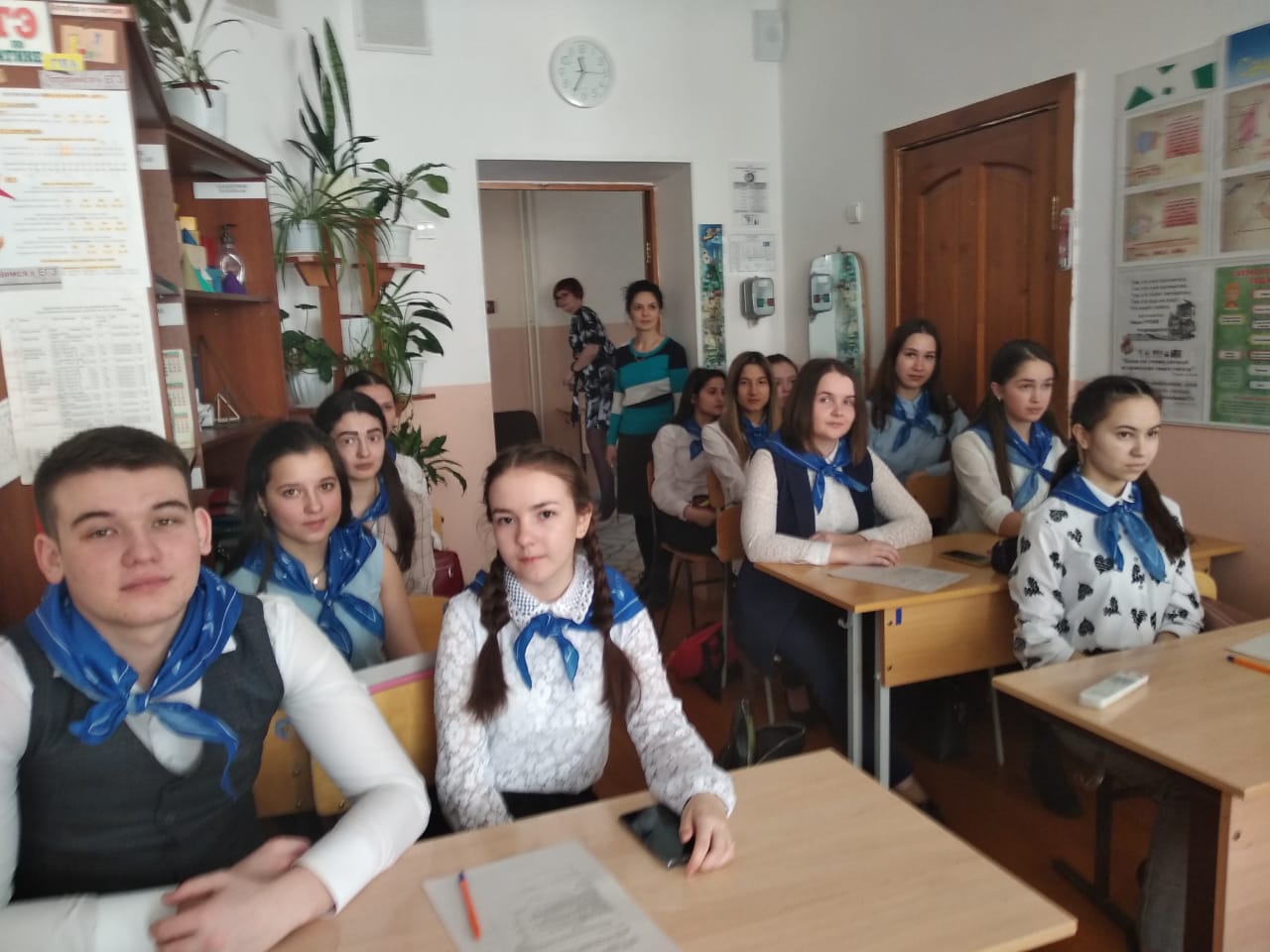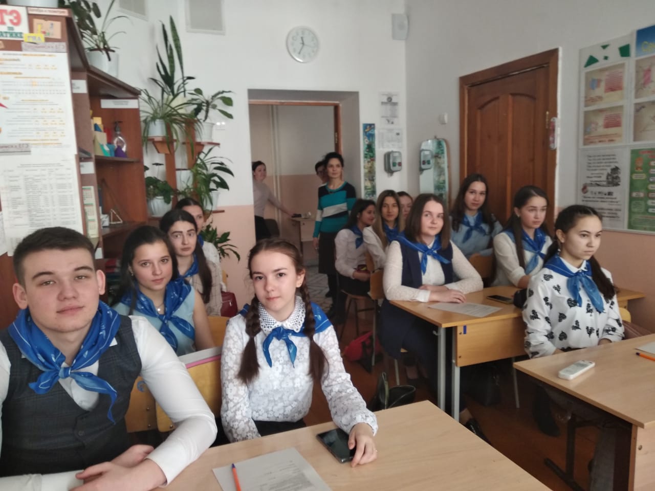 Кстати, в этот день в стенах гимназии как раз проходили открытые уроки участников Республиканского конкурса «Учитель года татарского языка и литературы-2020». Мы присутствовали на открытом классном часе «Без хәтерлибез, без горурланабыз» («Мы помним, мы гордимся») участника конкурса Р.М. Гиззатуллиной – учительницы татарского языка и литературы МАОУ «Татарская гимназия с отделением искусства г. Белебея». Данный классный час был посвящен 75-летию Великой Победе, в ходе которого ученики написали письма ветеранам войны и труда в форме фронтового треугольника времен Великой Отечественной войны.