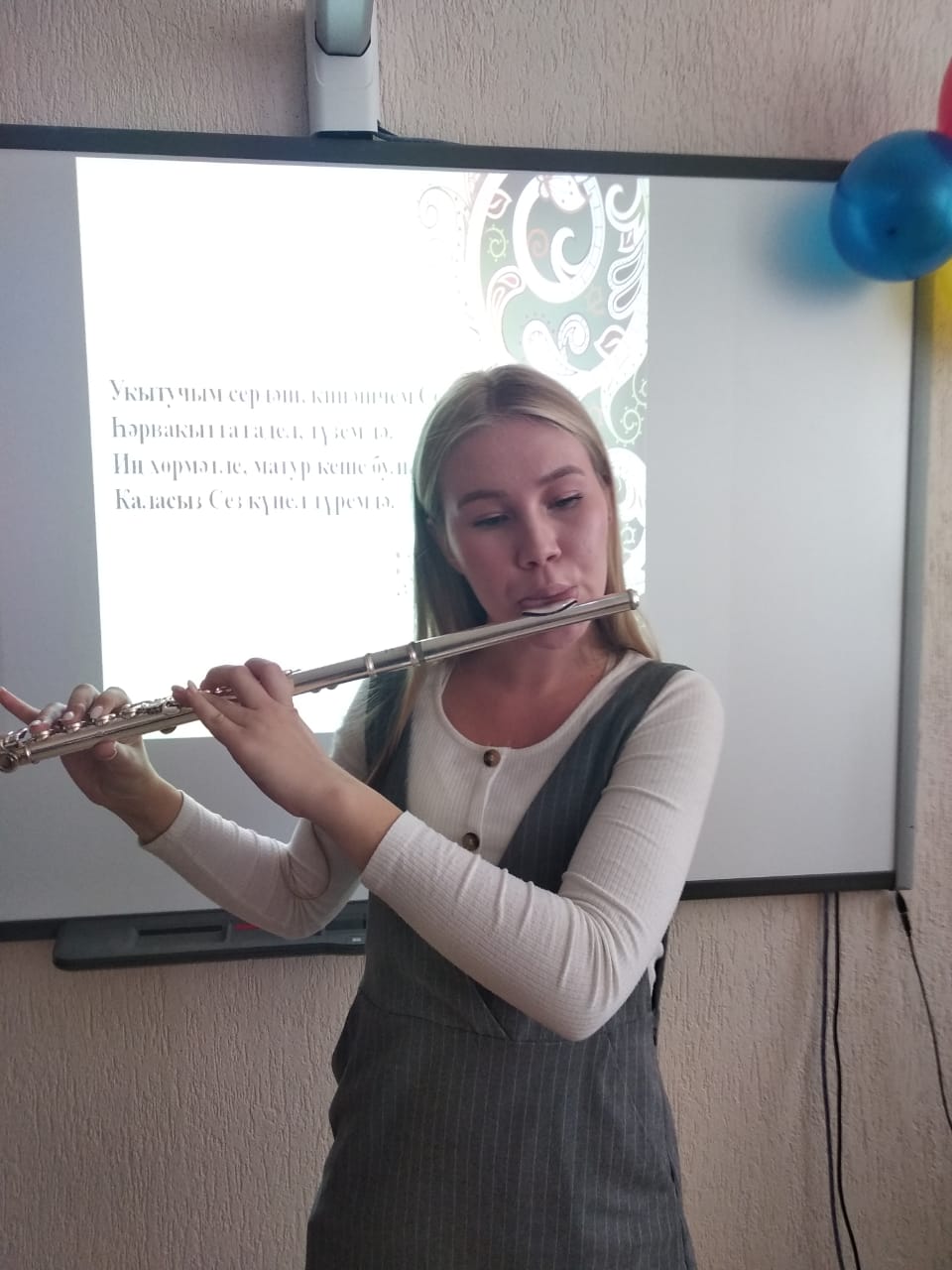 В этот прекрасный день мы собрались поздравить своих любимых преподавателей кафедры татарского языка и литературы в аудитории 316. Под руководством магистранта 1 года обучения Адели Забировой мы подготовили праздничные выступления: спели песни, станцевали современный танец, сыграли различные развлекательные игры. А Ляля Исмагилова сыграла на флейте мелодии романса Рима Хасанова. Также наши преподаватели прошли первое наше испытание: ответили на вопросы викторины. Победителем стала доцент Н.У. Халиуллина. В конце мероприятия к нам с поздравлениями в онлайн режиме присоединились студенты 2 курса группы ПОТЯВ-21-19.