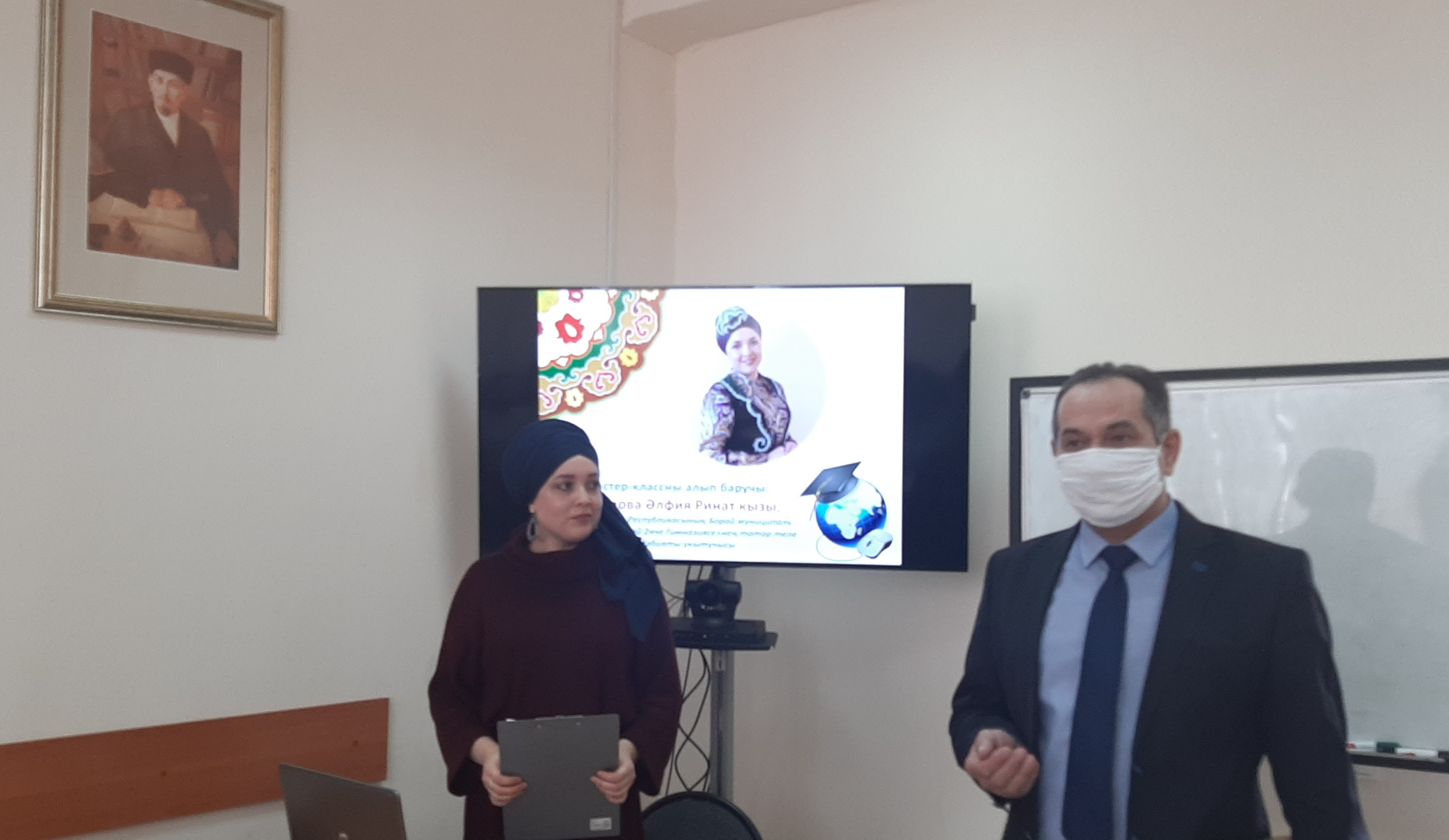 18 марта учительница татарского языка и литературы МОБУ «Гимназия № 2 с. Бураево» МР Бураевский район Аслямова Альфия Ринатовна показала мастер-класс на тему «Дистанционное обучение – требование времени» для студентов направления «Педагогическое образование» направленность (профиль) «Родной (татарский) язык и литература. Профиль по выбору» и «Родной (татарский) язык и литература. Английский язык». Мастер-класс был посвящен анализу системы дистанционных технологий на уроках татарского языка и литературы и во внеурочной деятельности. Альфия Ринатовна продемонстрировала дистанционные образовательные платформы по татарскому языку и литературе, последовательность и порядок работы в них. Студенты были  вовлечены в интерактивную деятельность.