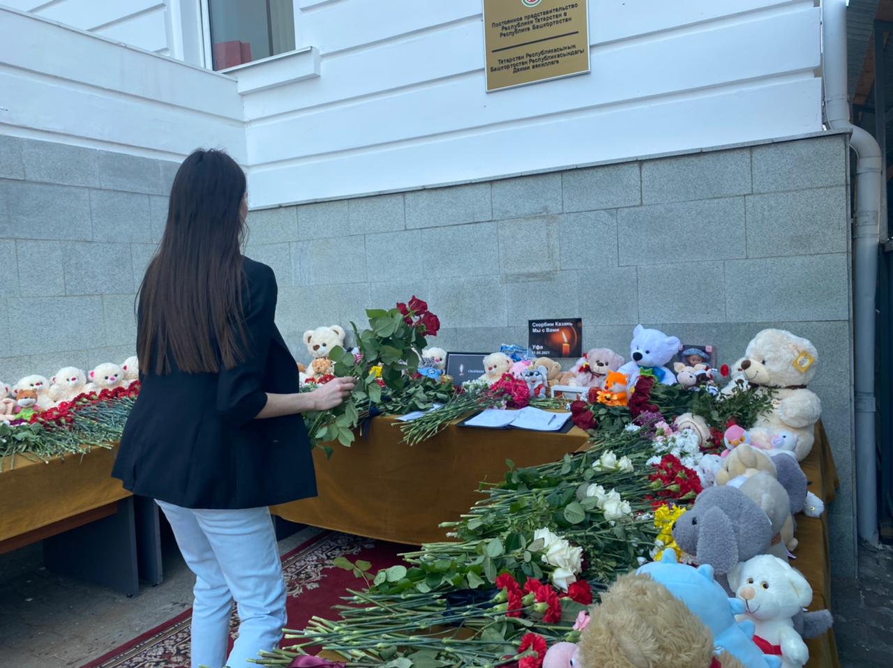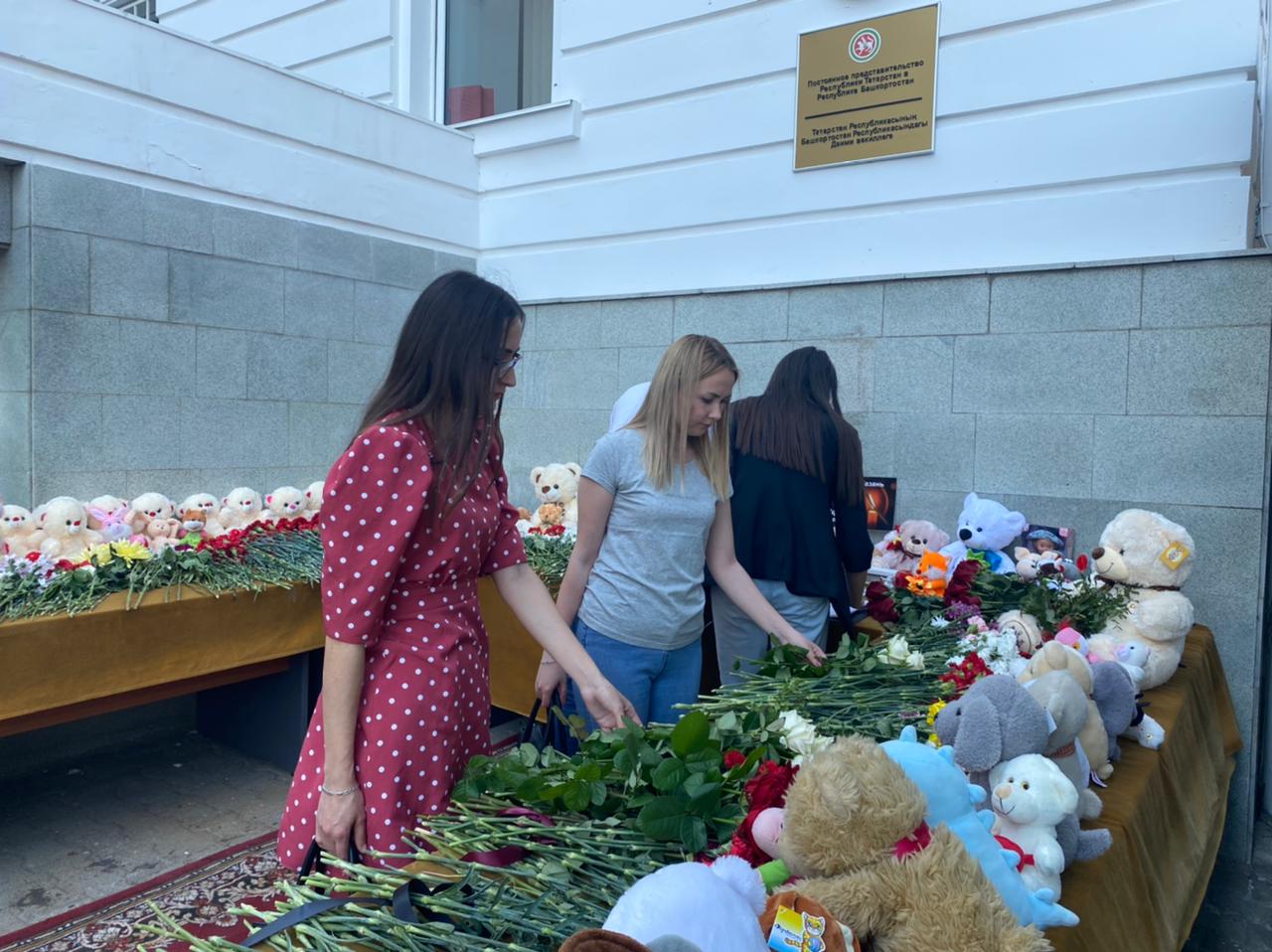Студенты кафедры татарского языка и литературы БГПУ им. М.Акмуллы возложили цветы к мемориалу в память о погибших при стрельбе в казанской школе N175, который был организован возле представительства Татарстана в Башкортостане. Они также написали  слова скорби по погибшим учащимся и учителям.