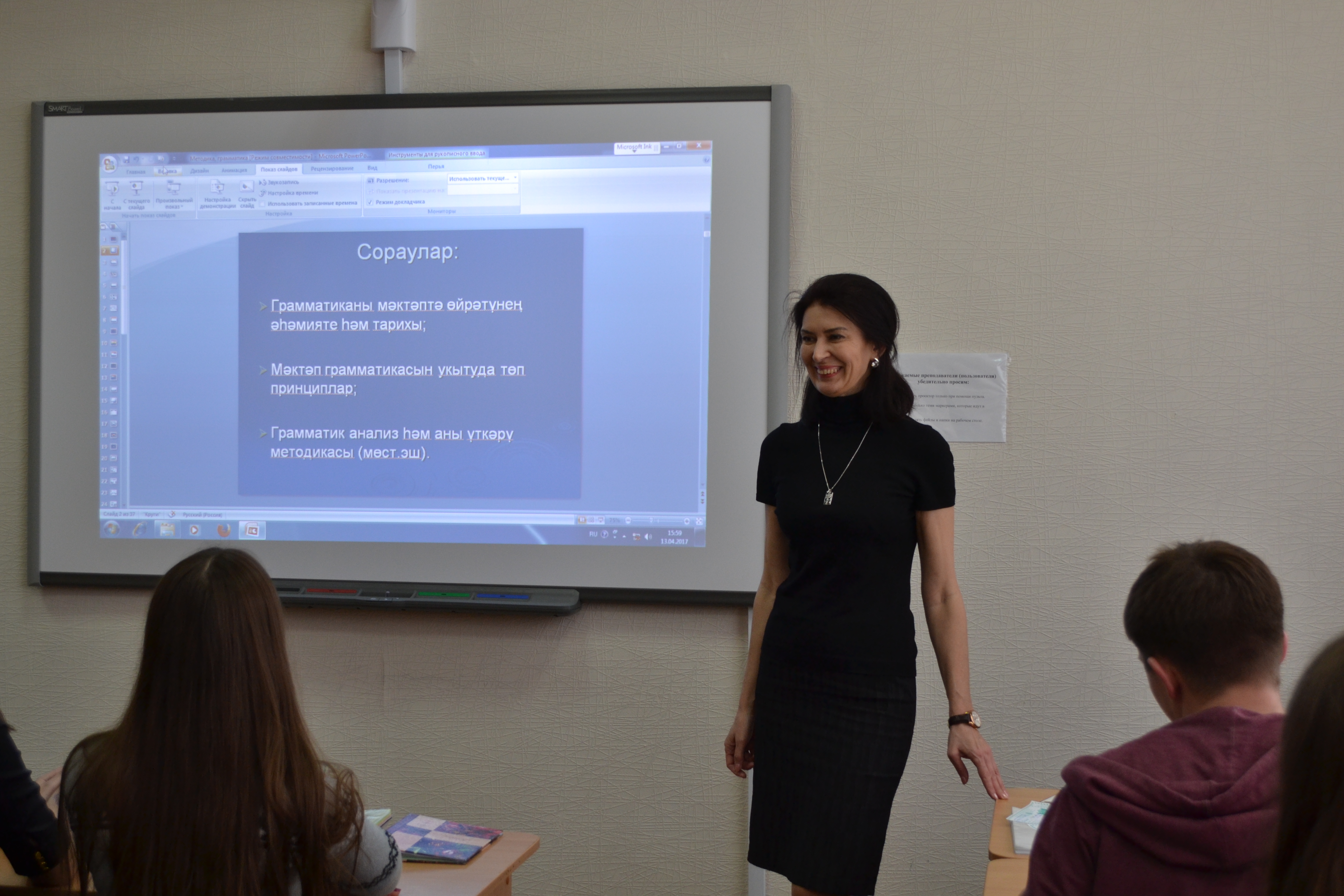 13 апреля 2017 года прошла открытая лекция со студентами 3 курса направления "Педагогическое образование", профиля "Родной (татарский) язык и литература; профиль по выбору" по дисциплине "Теория и методика обучения татарскому языку". Лекцию по теме "Методика преподавания грамматики татарского языка"  читала к.ф.н., доцент кафедры татарского языка и литературы Р.Р. Гареева.
