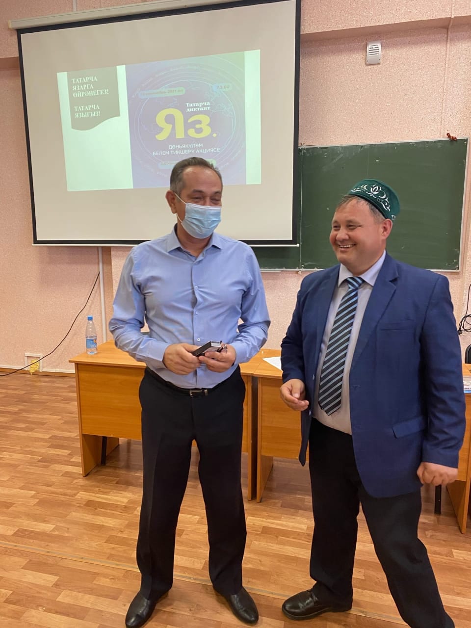 После диктанта И.С. Насипов поблагодарил присутствующих за участие в акции и сказал: "Здесь в зале - истинные патриоты своего народа. Кто-то проверяет свою грамотность, кто-то отдает дань уважения своему народу, его культуре, кто-то пришел пообщаться с единомышленниками на родном языке, услышать мелодию родной речи... Но самое главное - это уважение к родному языку и своим истокам!"