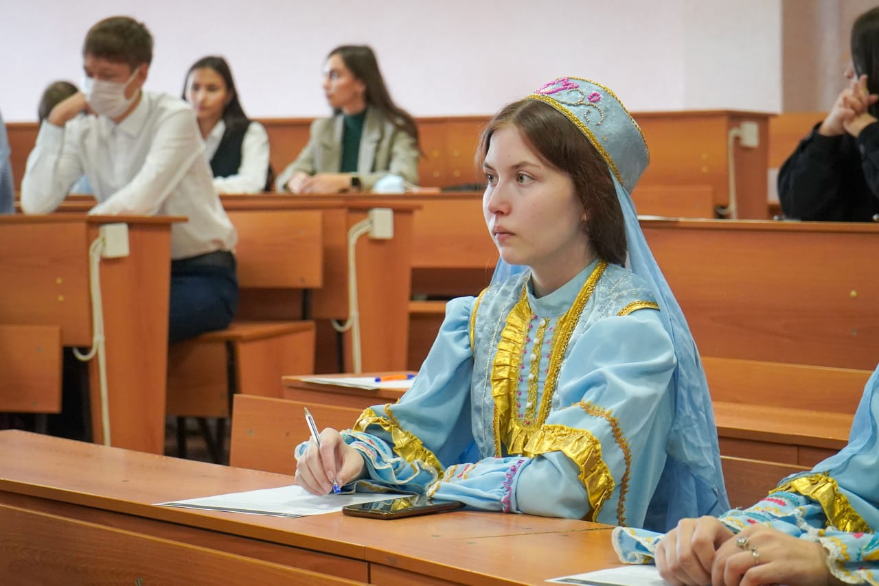 Текстом для диктовки послужил отрывок из произведения классика татарской литературы Гумара Баширова «Җидегән чишмә". Диктовала текст кандидат филологических наук, доцент Н.А. Мукимова.